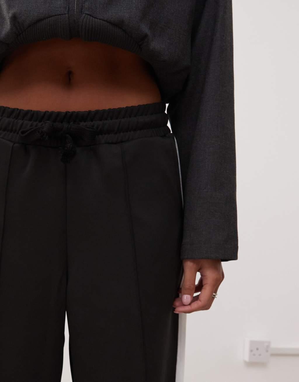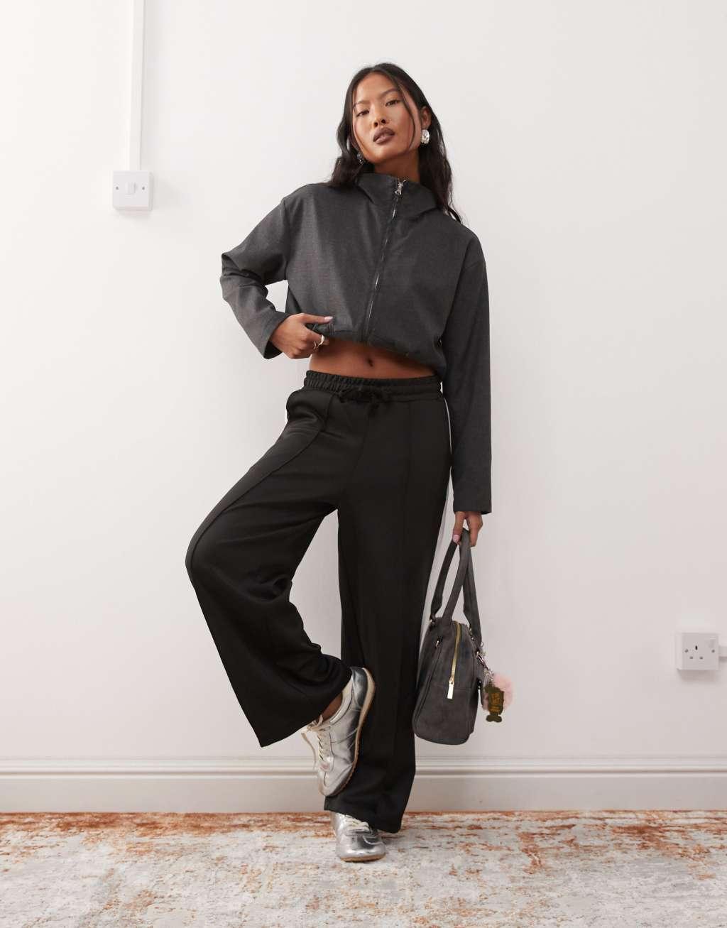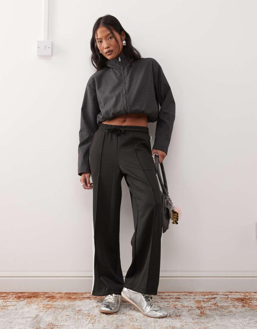 Noisy May Petite wide leg sweatpants with side stripe in black