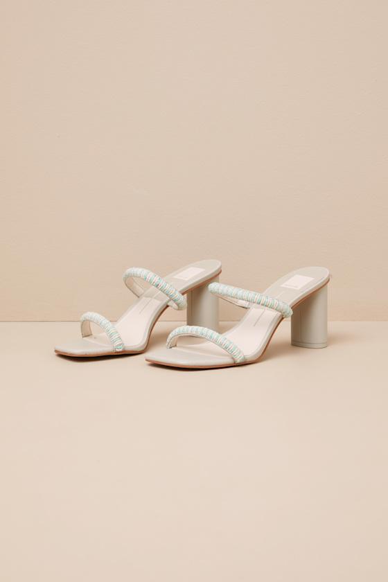 Step out to all your spring events with these indisputably chic Dolce Vita sandals with a faux leather construction that shapes a square footbed and an effortless slide-on design. Ivory and mint-hued little beads create a striped design across the slender toe and vamp straps, while a sturdy block heel keeps you dancing the night away!