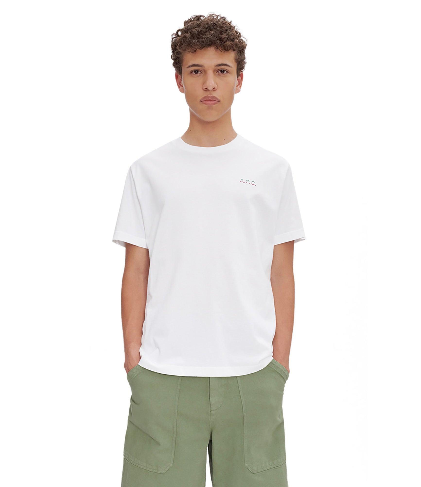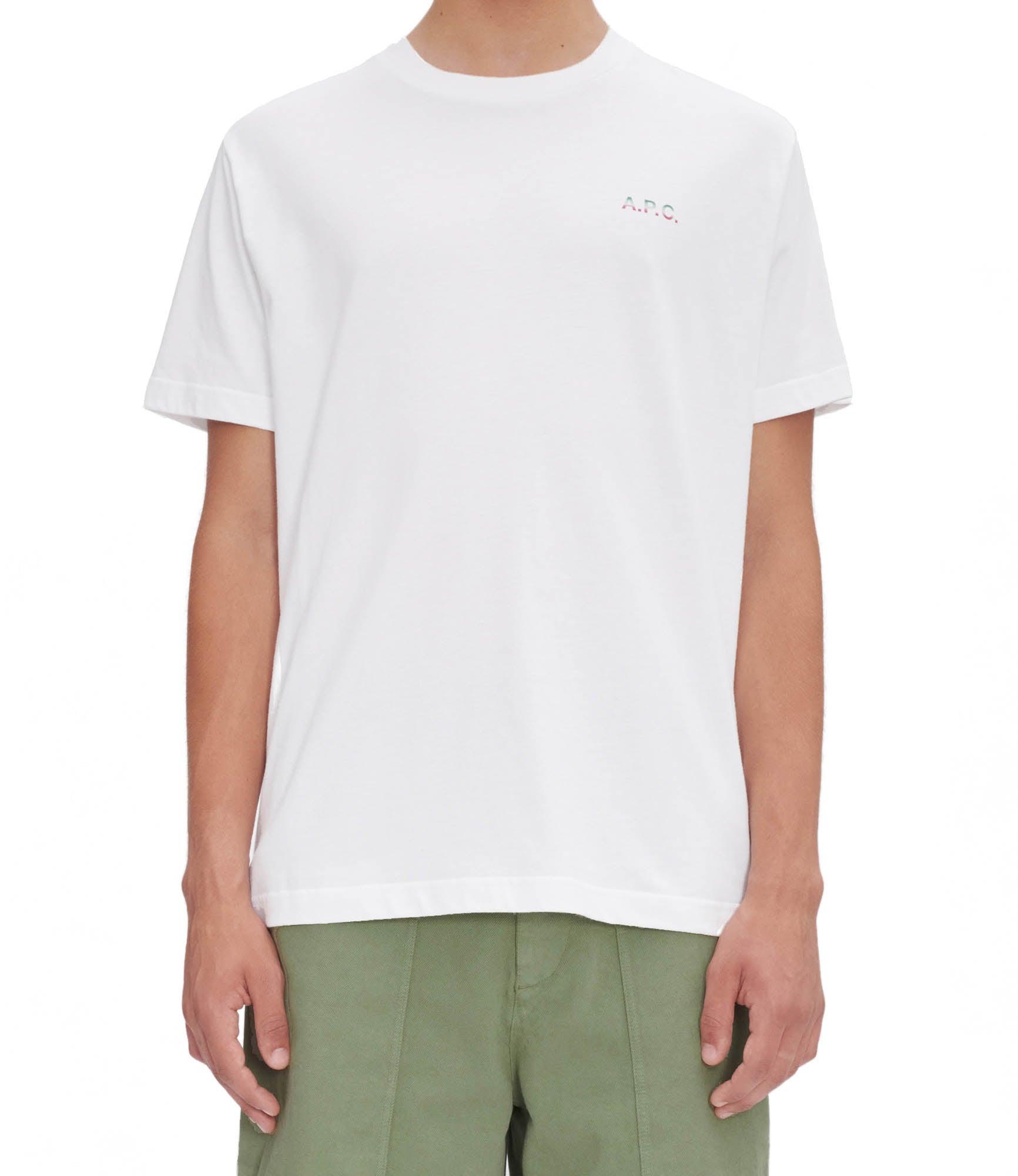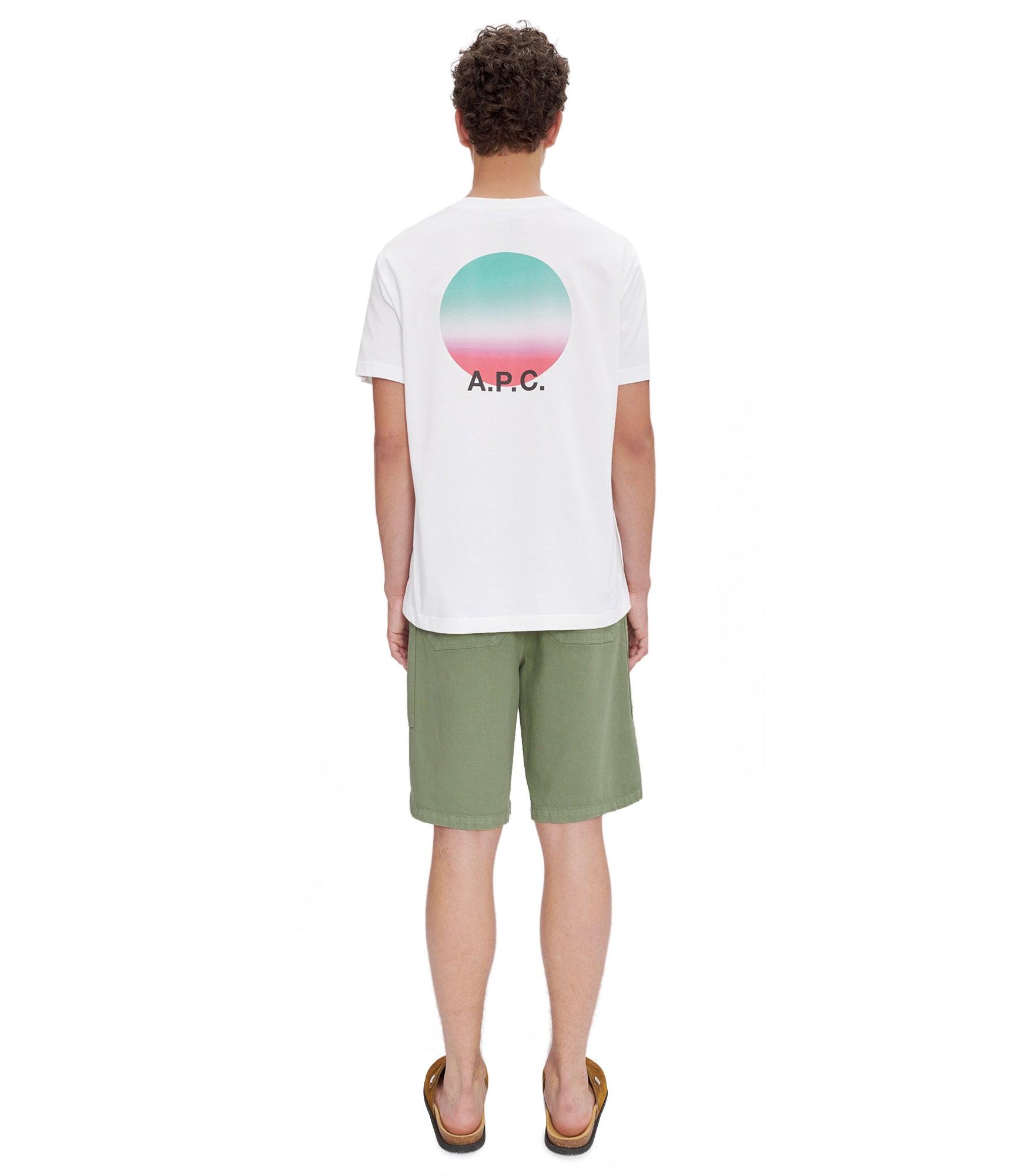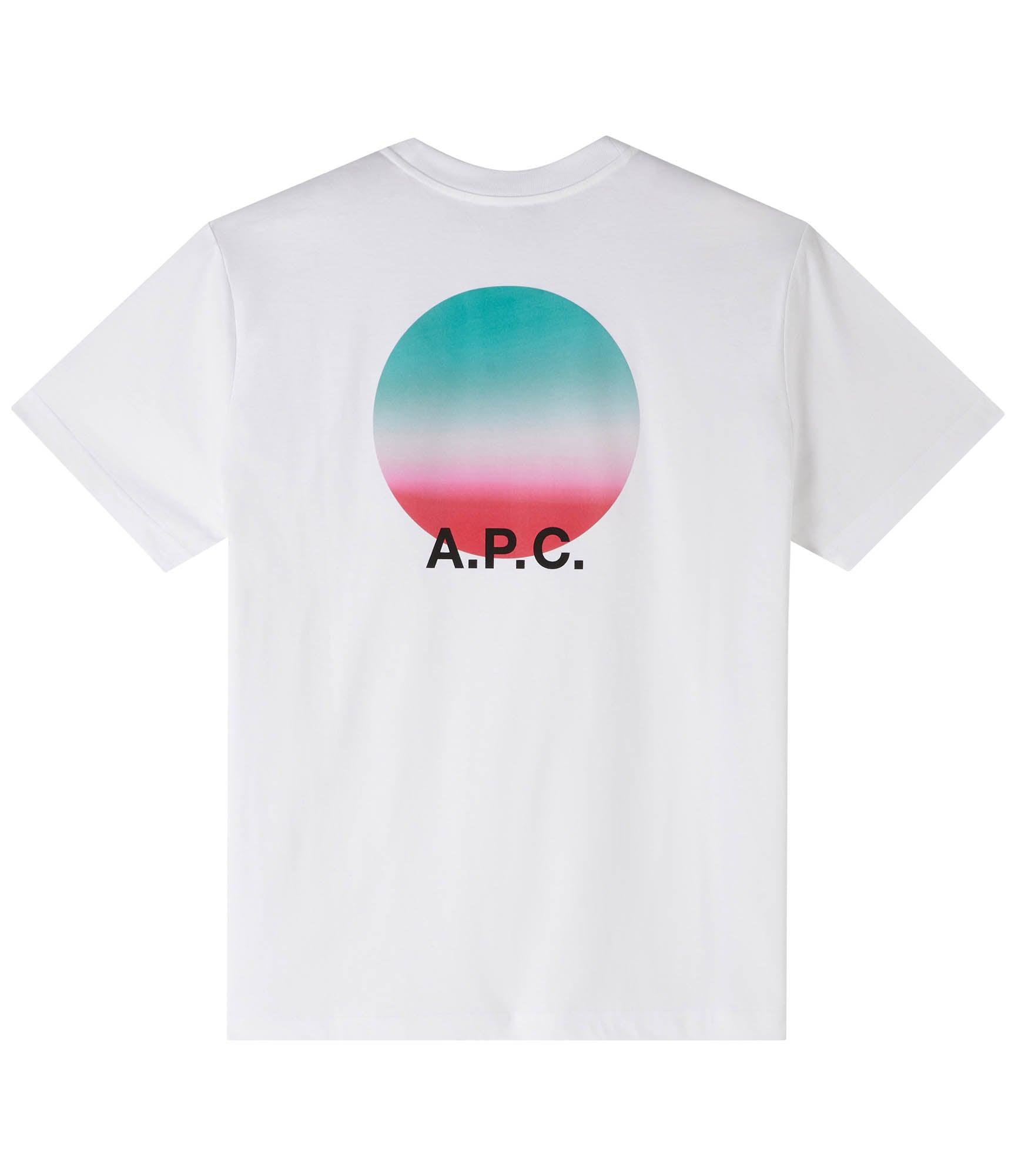 - Straight cut. - Crew neckline. - A.P.C. logo printed over the heart. Round 'sunset' gradient from green to red on back center. - Contains 100% cotton from organic farming.