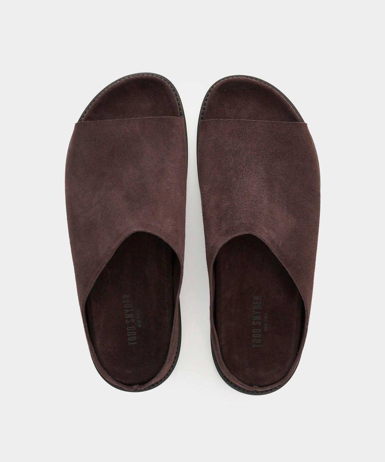 Our Nomad Sandals are handcrafted by artisans in Tuscany using traditional techniques. The molded foam footbed is wrapped with suede for everyday comfort, while the upper (all made from suede) is made with stitch-and-turn construction for a smooth, soft finish. Super lightweight and super chic, these are an easy option for any warm-weather look, versatile enough to take you from day to night. Slide them on with a pair of shorts or linen trousers to channel summer-in-Italy vibes. Italian Suede Upper Molded Foam Footbed Stitch-and-Turn Construction Rubber Groove Sole Fits True to Size Made in Tuscany, Italy Wipe Clean, No Water Style SND017