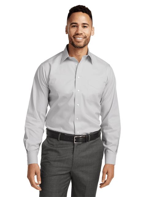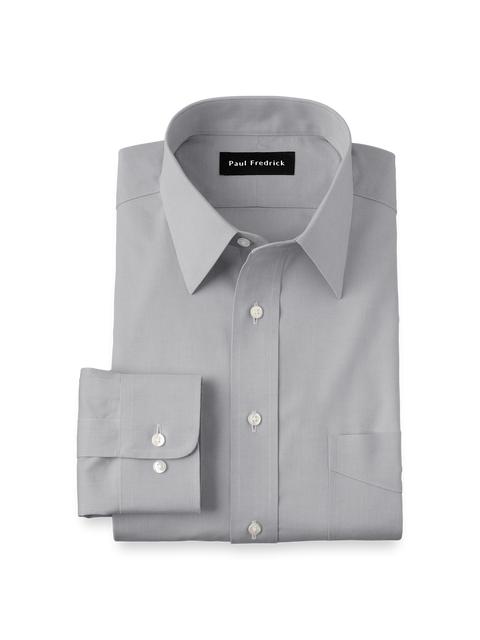 Non-Iron Cotton Pinpoint Solid Point Collar Dress Shirt - Grey