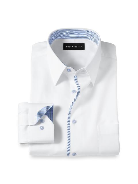 Trim Inside Neckband, Inside Cuffs, Button Side Of Placket