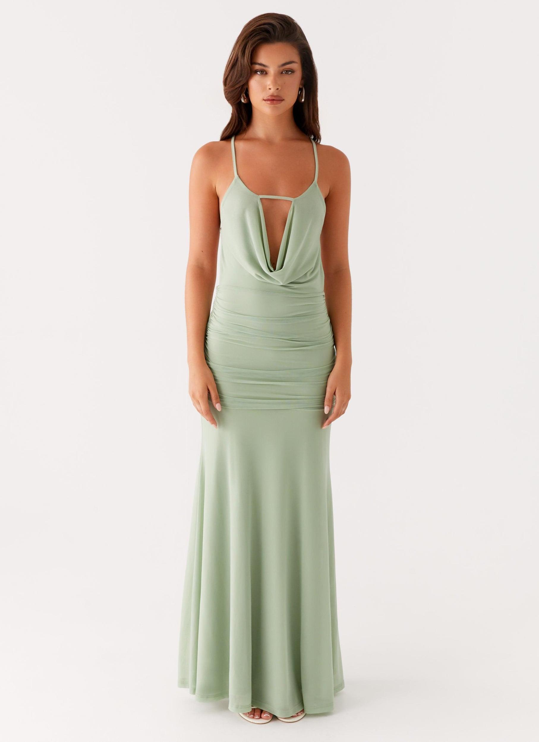Peppermayo ExclusiveThe Norah Maxi Dress exudes effortless glamour with its deep V neckline and open back, creating a striking yet elegant silhouette. Designed for those who embrace bold fashion, this dress offers a perfect balance of sensuality and sophistication. - Halter neck ties - Deep cowl neckline - Gathered mesh hip - Maxi length - Front strap connector - Open back - Adjustable back ties - Fully lined - 94% polyamide, 6% spandexSize AU 8 / US 4 garment measurements:Bust: 42 cm / 16.54 inWaist: 62 cm / 24.41 inHip: 82 cm / 32.28 inHem: 222 cm / 87.80 inLength: 134 cm / 52.76 inOlivia is 170cm and wearing a size AU 8 / and US 4