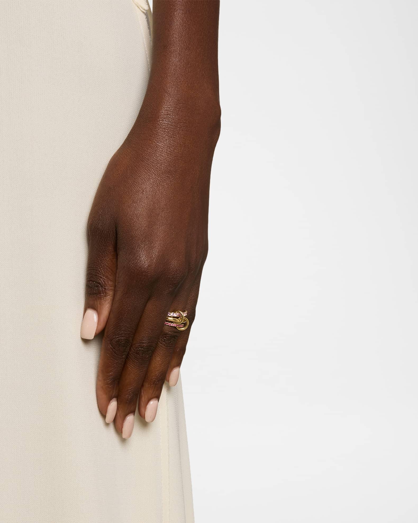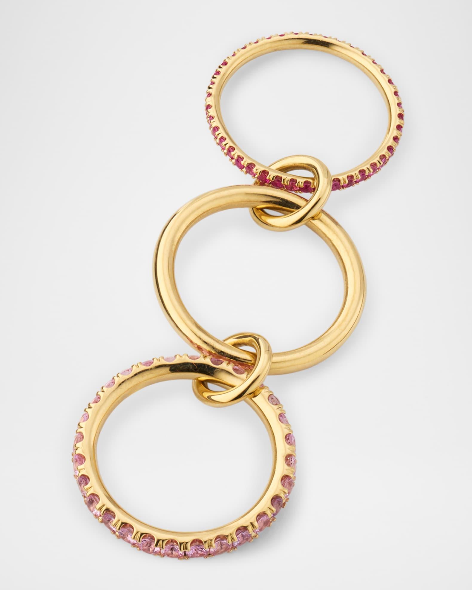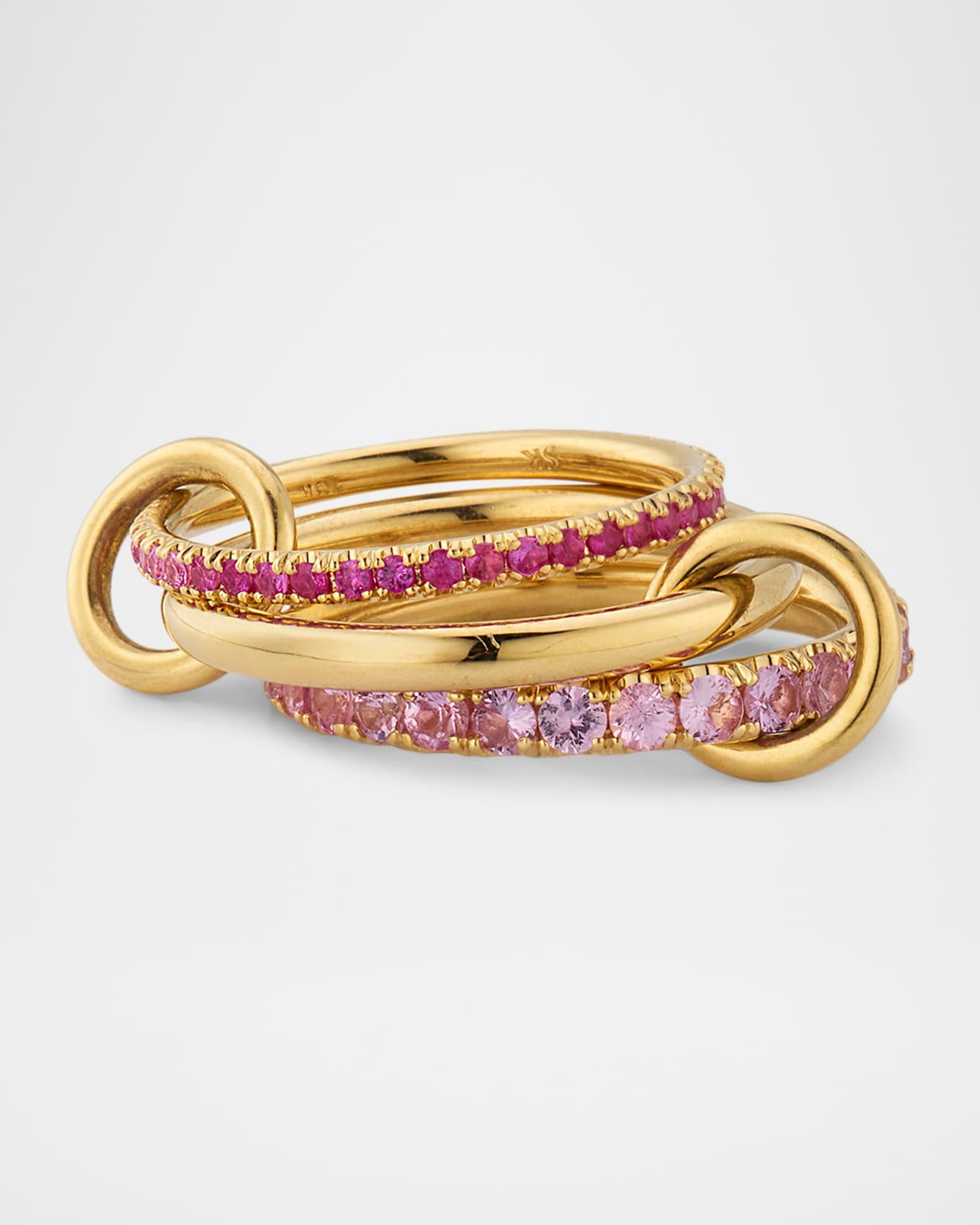 Spinelli Kilcollin rings are crafted with bands, annulets, and connectors. Three yellow gold links comprise the Norah Rose, featuring light pink and dark pink sapphires for a dynamic design. 18-karat yellow gold 1.65 total sapphire carat weight Professional cleaning recommended Made in USA