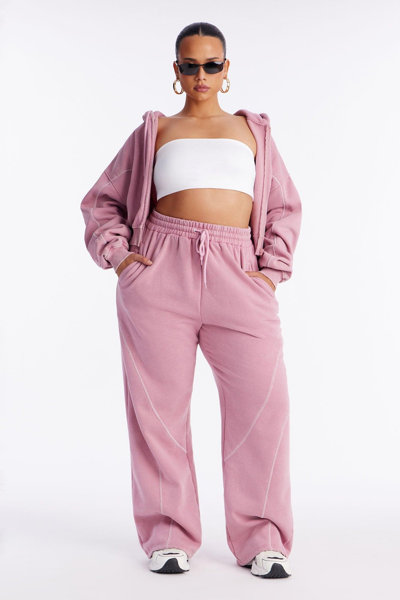 Available In Black, Blue, Mauve And Plum. Lounge Pant High Waisted Elastic Waistband Wide Leg Fleece Drawstring Contrast Trim Pockets Pair With "Norah Washed Lounge Hoodie" Disclaimer: Due To The Specialized Wash, Each Garment Is Unique. 60% Cotton 40% Polyester Imported