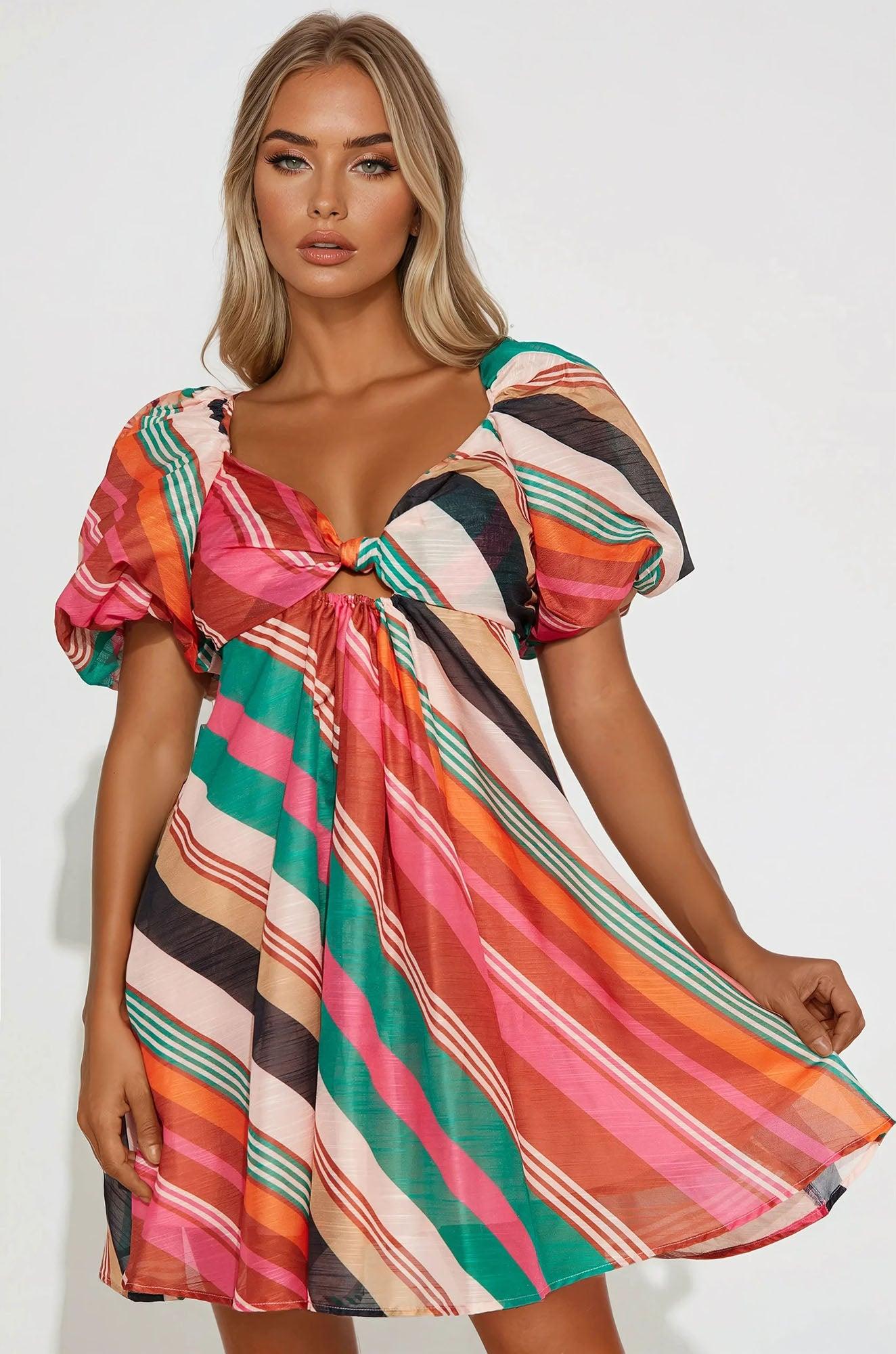 Noree Puff Sleeve Mini Dress - Multi Color Female