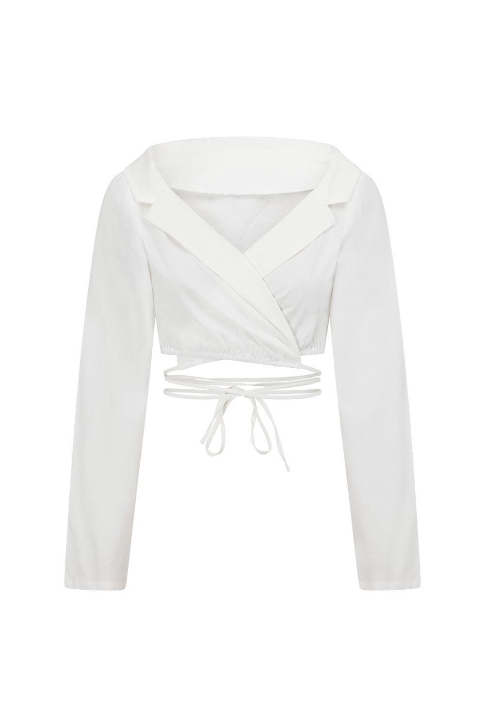 *THIS IS A FINAL SALE ITEM and cannot be returned. See our Returns Policy here The perfect styling piece! Made from a structured natural cotton fabric, the Norella Wrap Top features relaxed full length sleeves, cross over wrap at front with wrap tie detail at waist and a wide neckline with lapel collar. Style it with a vegan leather skirt or pair it back with jeans! Designed exclusively by Sabo.