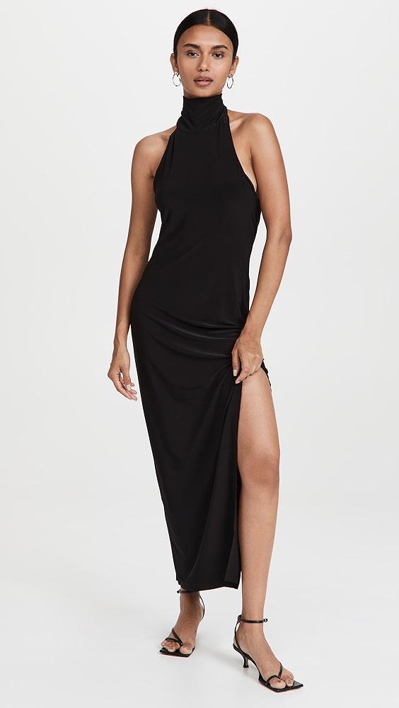 Norma Kamali Halter Turtle Side Slit Gown | Shopbop