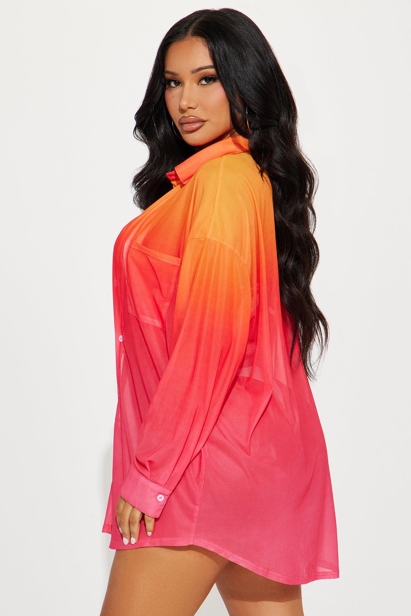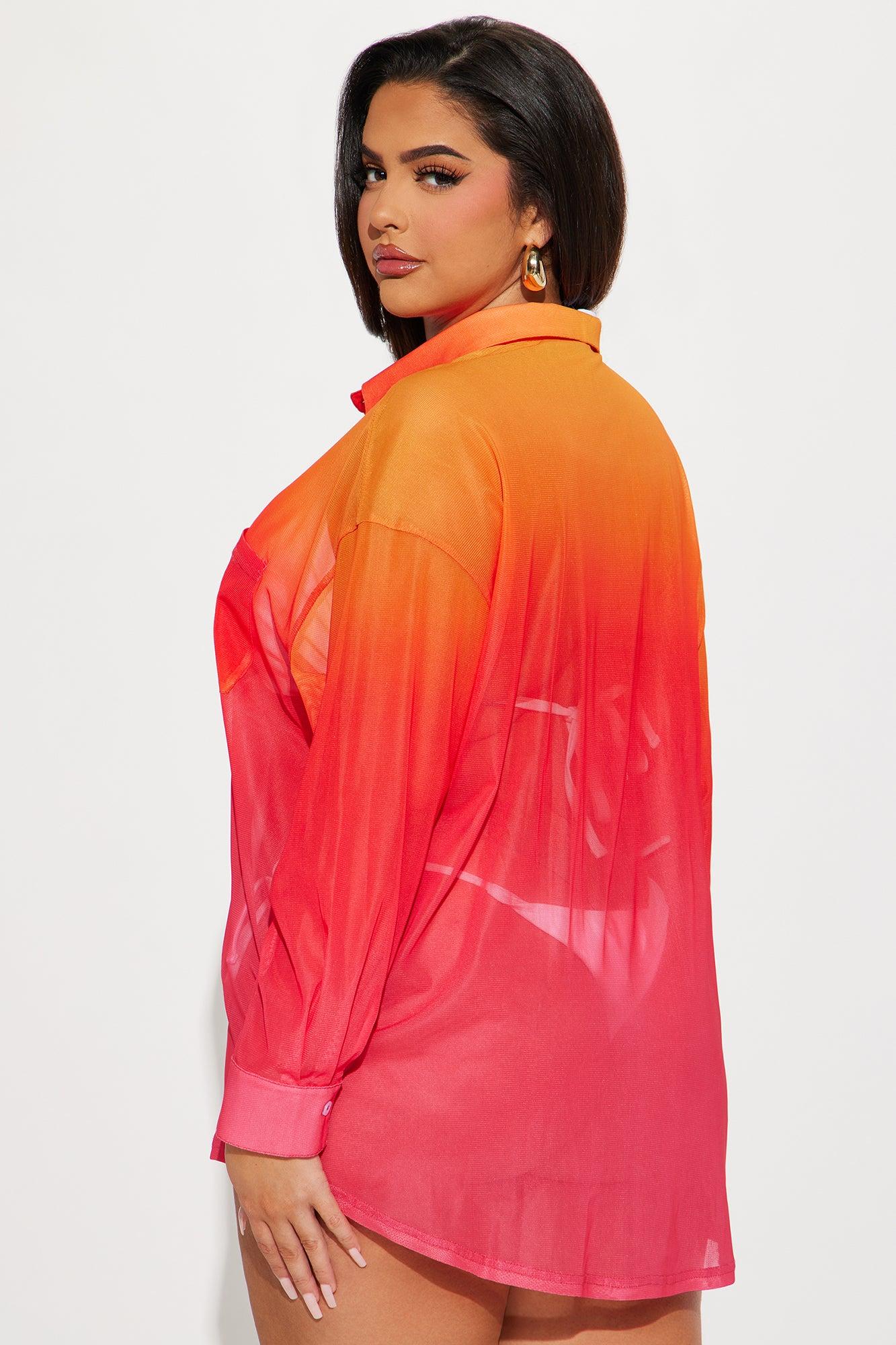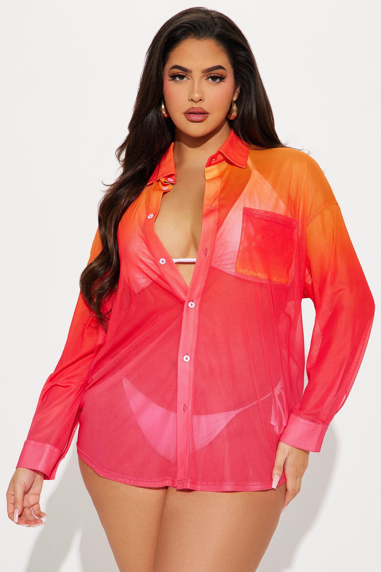 Available In Blue/combo And Red/combo. Swim Cover Up Shirt Collared Button Up / Button Down Long Sleeves Ombre Print Full Stretch Final Sale Disclaimer: Print Placement Will Vary. 95% Polyester 5% Spandex Imported California Proposition 65WARNING: Cancer and Reproductive Harm - www.P65Warnings.ca.gov.