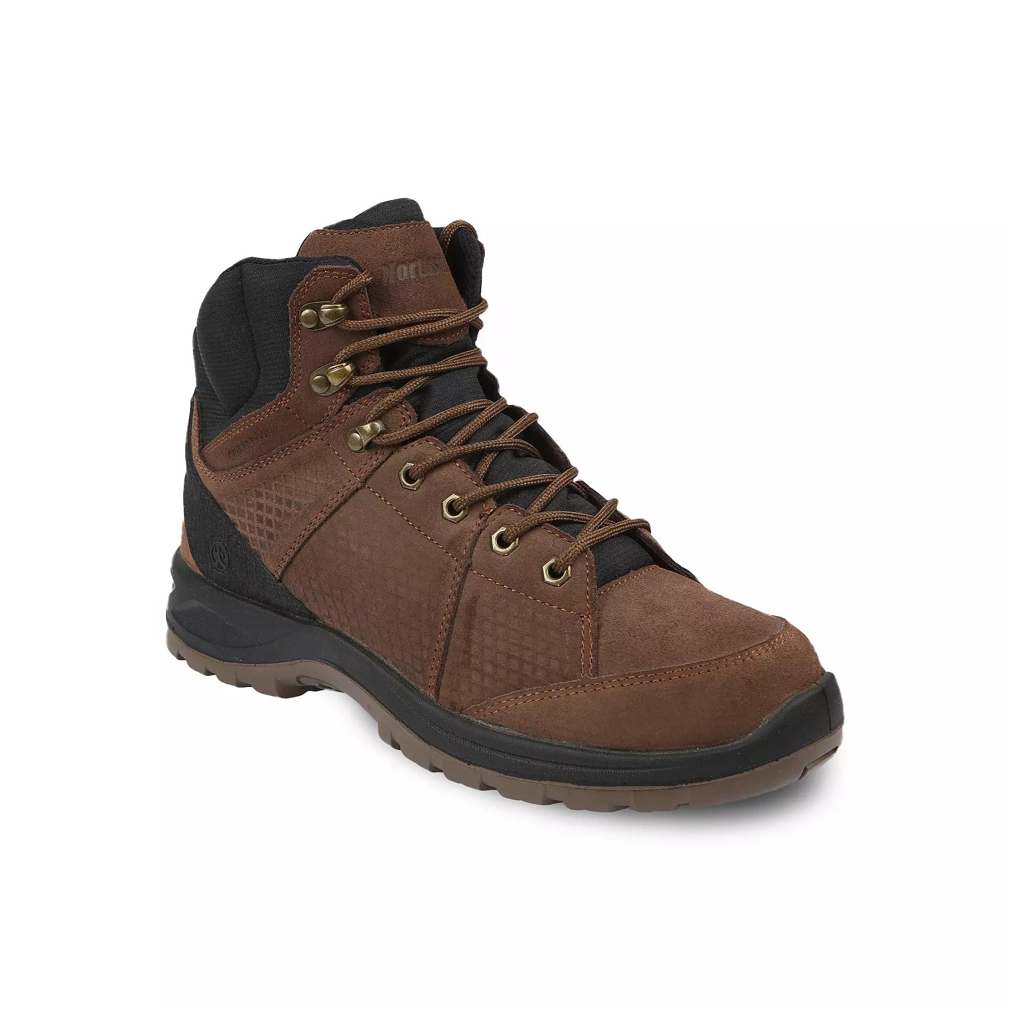 Be ready for any environment with these Northside Rockford Mid Men's Waterproof Leather Hiking Boots. Be ready for any environment with these Northside Rockford Mid Men's Waterproof Leather Hiking Boots.Click this FOOTWEAR GUIDE to find the perfect fit and more! BOOT FEATURES Rugged distressed leather upper features a waterproof, seam sealed construction and padded mesh collar and tongue Moisture wicking lining that keeps feet dry Speed lacing system allows for easy and secure adjustmentsBOOT CONSTRUCTION Leather upper Textile lining Polyurethane midsole Manmade outsoleBOOT DETAILS Round toe Lace-up closure Polyurethane footbed 5-in. shaft 9.5-in. circumference WARNING: This product can expose you to chemicals including Styrene, which is known to the State of California to cause cancer. For more information go to http://www.p65warnings.ca.gov/. Size: Medium (9.5). Color: Brown. Gender: male. Age Group: adult.