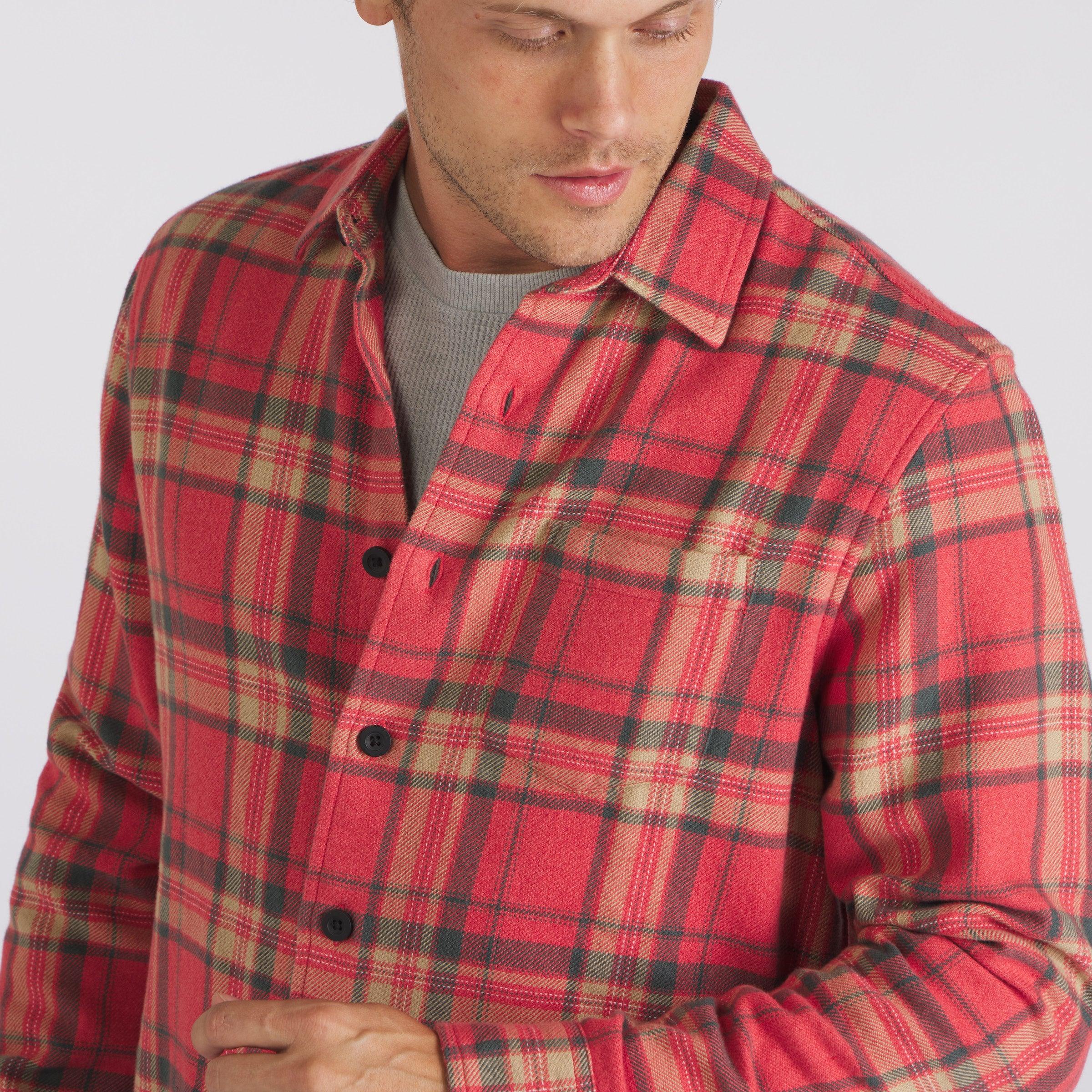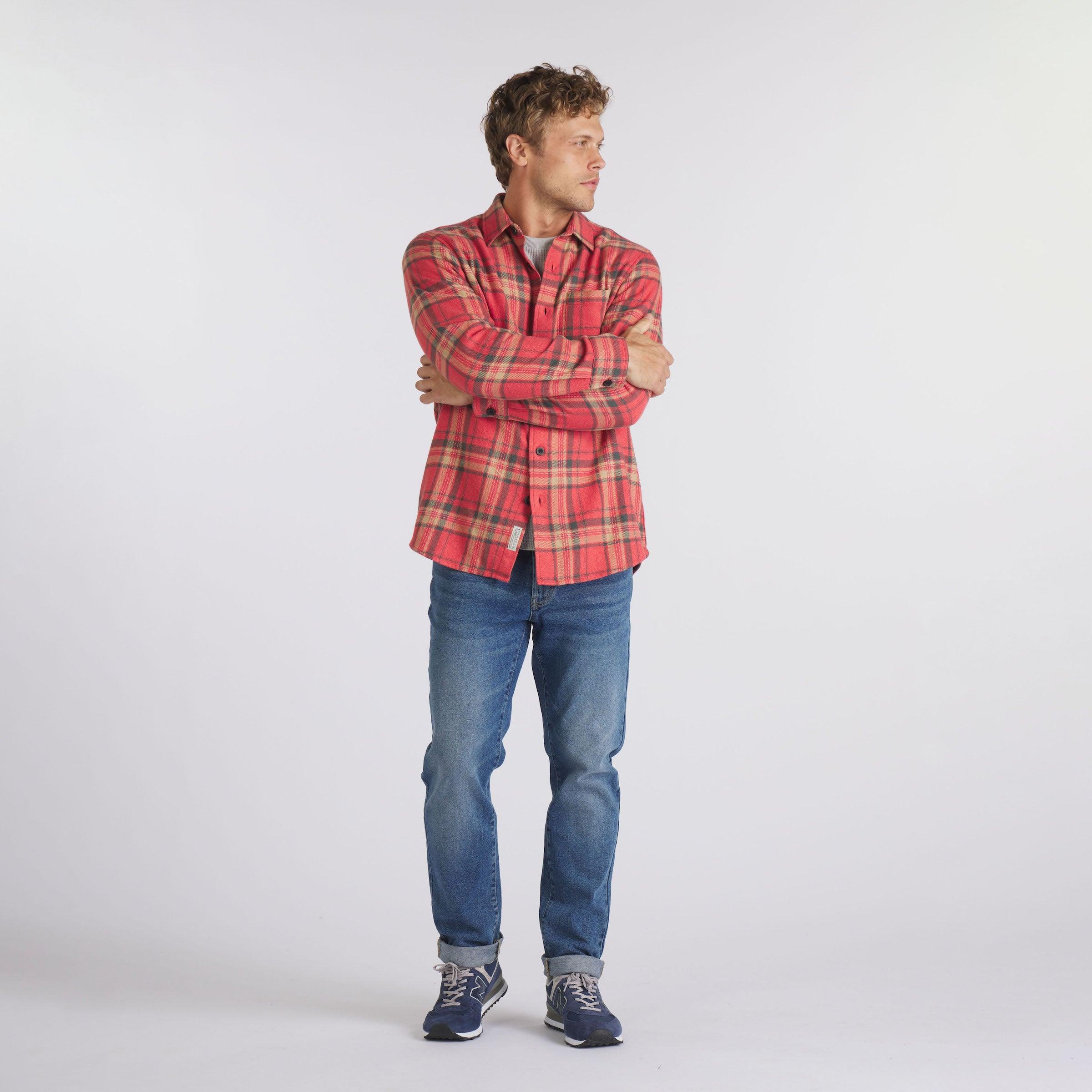 The harvest of autumn hues. It's that time of year when our favorite season is October. No, we are not avid leaf-peepers hitting the trails of New Hampshire, but we do like to celebrate the rich fall foliage colors of the season. The Northwoods are inspired by the New England hues and crafted with a super-soft brushed flannel. Washed and weathered to perfection, you'll want to sleep in them. The Model is also wearing: New Spencer Waffle Crew - Glacier Gray and Edward Stretch Straight Fit Denim - Vintage Wash. Model: Chris is wearing size medium and is 6'. ----Details---- Spread collar Yarn dyed mid-weight brushed flannel Left chest pocket Black flat military style buttons Curved hem Imported ----Materials---- 100% Cotton ----Size & Fit---- Measuring Method: All measurements are in inches and based on a “flat” garment, as shown below. For comparison with one of your existing garments, please lay garment on a flat surface and follow the key measurement points. For chest and neck, if you double the flat measurement, you will get close to the full body measurement. ----Care---- Machine Wash Warm With Like Colors Do Not Bleach Tumble Dry Low Use Cool Iron If Necessary