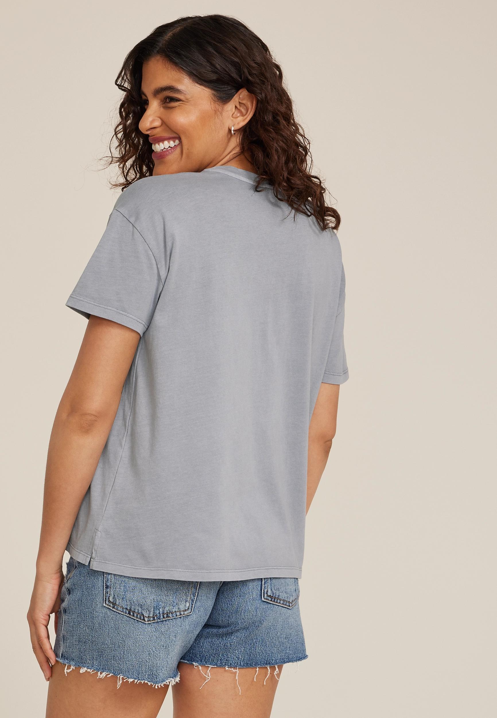 Extra relaxed and trend-right for cool gals and comfort lovers alike. .mar-pdp-section .mar-product-description {color: #000;}.mar-pdp-section .mar-product-description ul, .mar-pdp-section .mar-product-description ul>li {margin-left: 10px;padding-left: 10px;}.mar-pdp-section .mar-product-description .mar-product-description-content ul li{list-style-type: disc;margin: 0 0 5px;padding-left: 5px;}.mar-pdp-section .mar-product-description p {color: #000;padding: 5px 0;}@media only screen and (max-width: 1023px){.mar-pdp-section .mar-product-description .mar-product-description-content ul li{list-style-type: disc !important;} .mar-pdp-section .mar-product-description .mar-product-description-content .mar-tab-content ul{padding-left: 10px;}.mar-pdp-section .mar-product-description .mar-product-description-content .mar-tab-content {font-weight: 300;}} Features: comfortable fabric easy stretch solid versatile color inchNot Lost Just Exploring inch scenic mountain graphic crew neck short sleeves straight hem