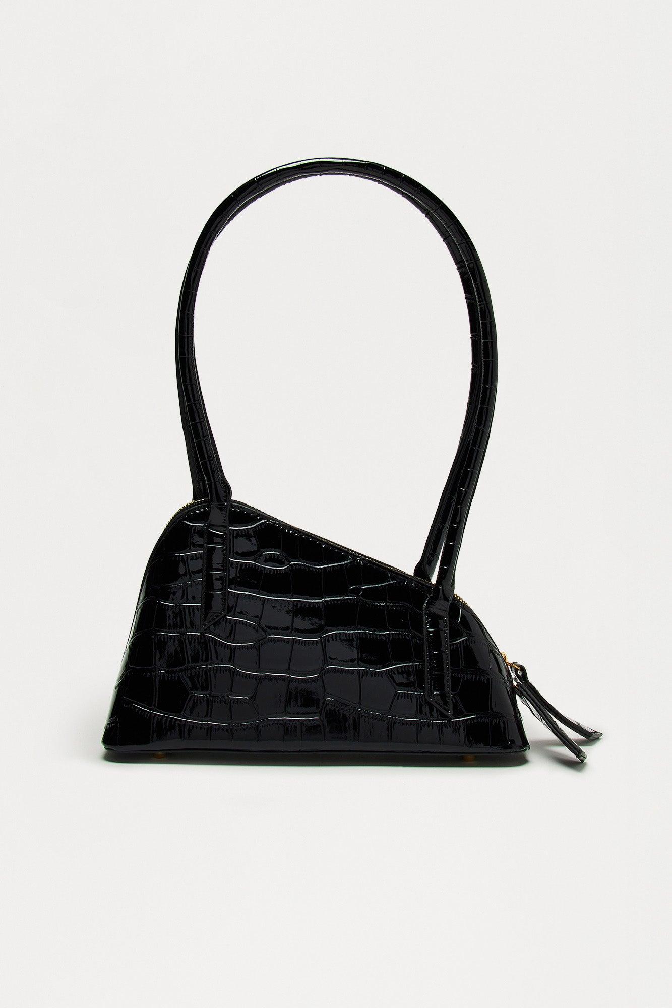 Available In Black And Silver. Shoulder Bag Top Zip Closure Faux Leather Material Embossed Croc Pattern Faux Leather Zip Detail Dimensions: 10" 6" 3" 100% Man Made Material Imported California Proposition 65WARNING: Cancer and Reproductive Harm - www.P65Warnings.ca.gov.