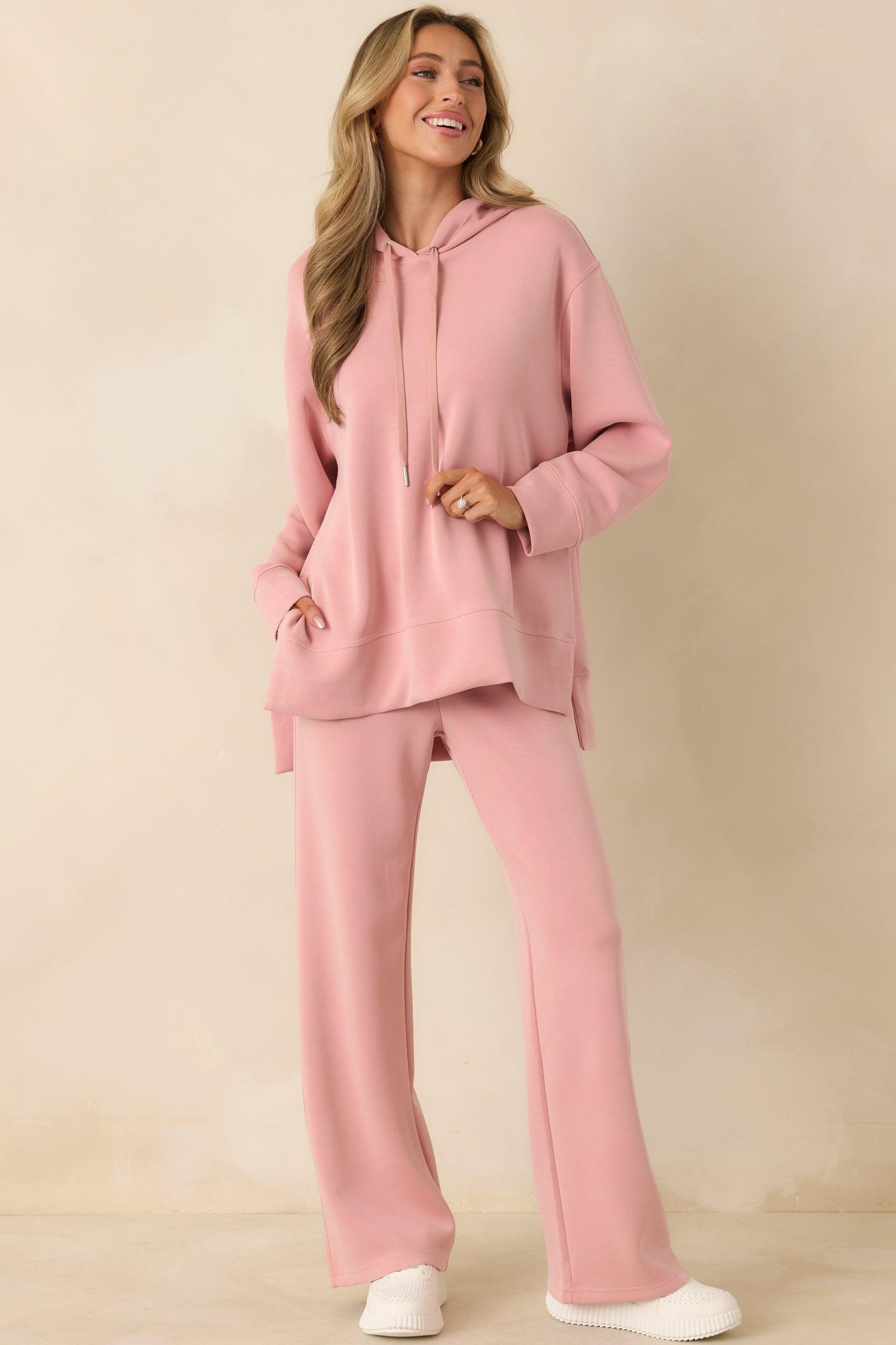 Nothing Extra Powder Pink Hoodie Sweatshirt is all about comfort done right. This powder pink hoodie keeps things relaxed and easy with a soft feel and an unfussy design that works for slow mornings, casual errands, and everything in between. It’s the kind of layer you throw on once and never want to take off. This powder pink hoodie sweatshirt features a relaxed silhouette with an attached hood and adjustable drawstrings. Designed with long sleeves and dropped shoulders, it’s finished with ribbed cuffs and a ribbed hem for a comfortable fit. 48% Polyester, 48% Modal, & 4% Spandex Unlined Hand Wash Cold Manufactured in China Designed in The USA Model is 5'8" and Wearing a Size Small