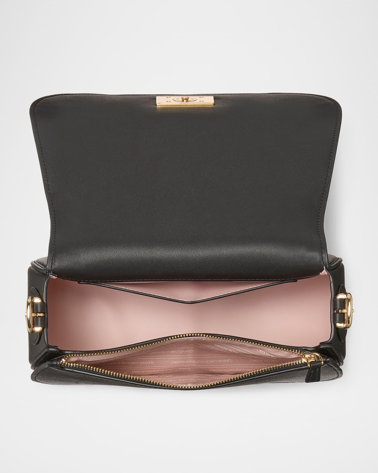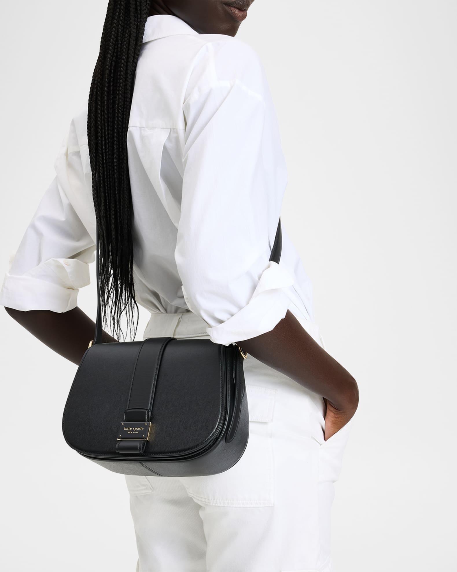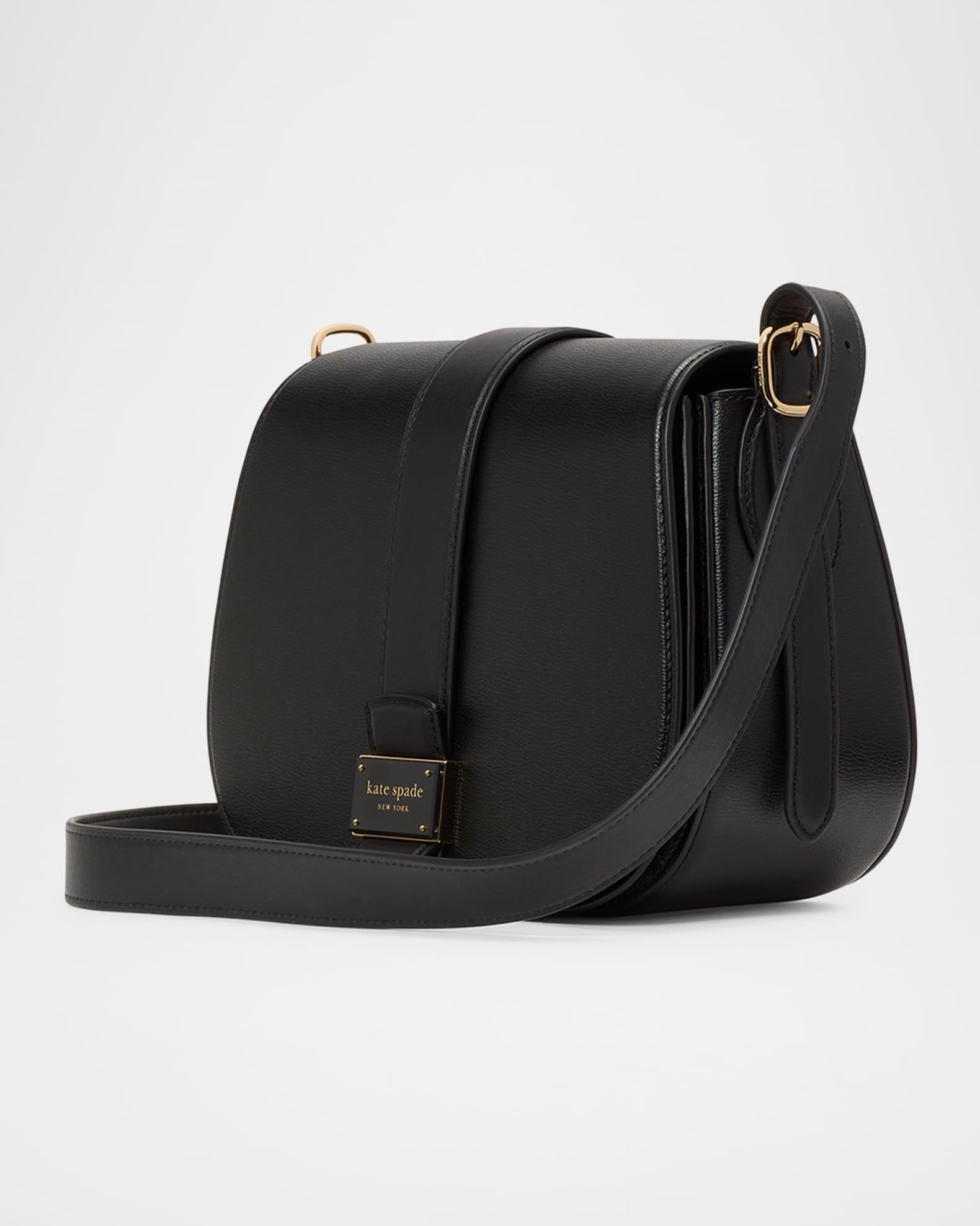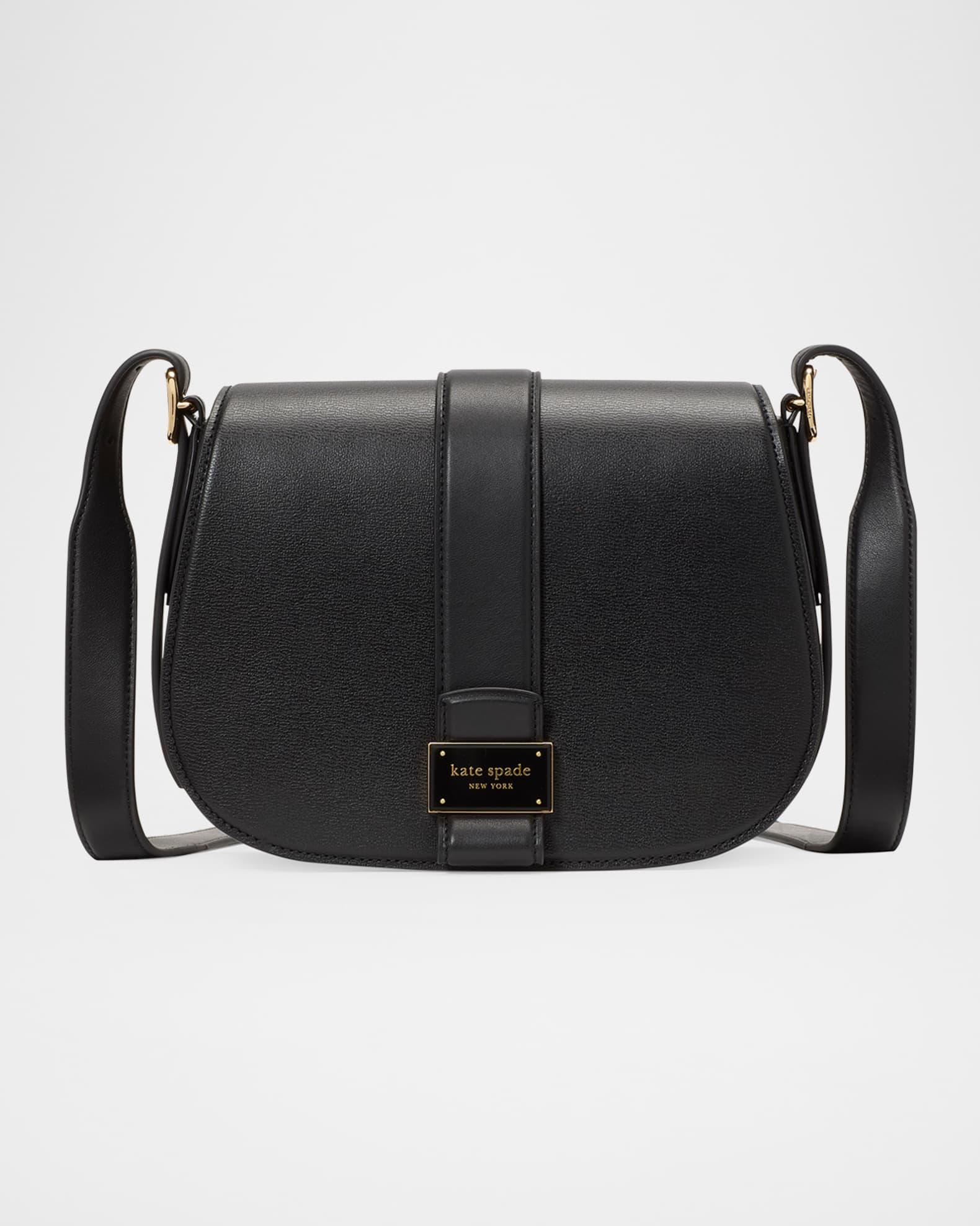 kate spade new york "nouveau" saddle crossbody bag crafted in finely textured leather with smooth leather details Adjustable crossbody strap, 22" drop Flap top with magnetic closure Interior, one zip pocket and one slip pocket Faille lining Trim: Leather Approx. 8.2"H x 6.9"W x 3.2"D Item Weight (Lbs.): 1.0 Spot clean Imported