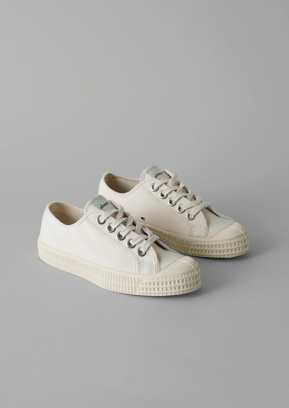 Cotton canvas. Cotton laces. Textured natural rubber sole.