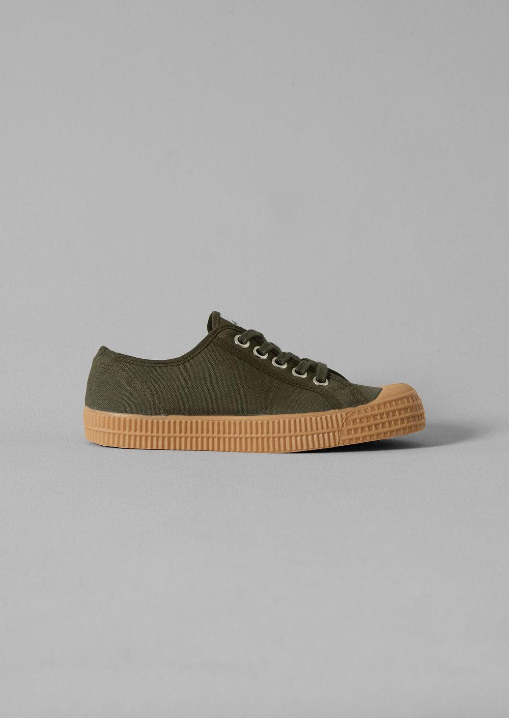 GOTS-certified organic cotton canvas. Cotton laces. Textured natural rubber sole.