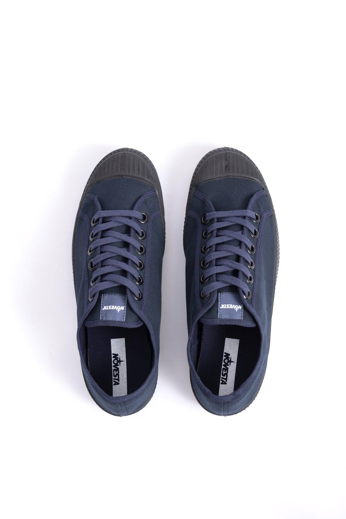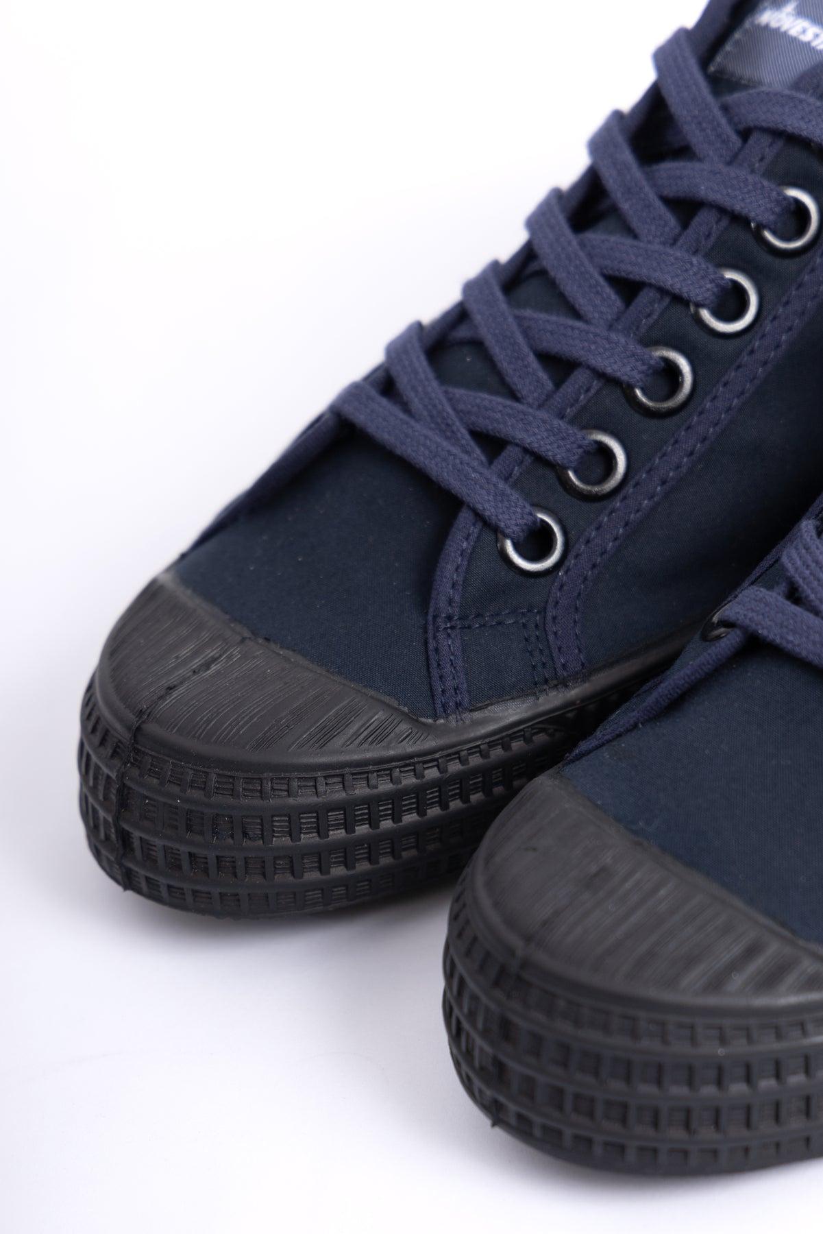 Novesta Star Master trainers in Wax Cotton Navy, the signature shoe of the Novesta brand. Canvas upper, vulcanised rubber, chunky sole, rubber toe cap, handmade in Slovakia. Constructed using only GOTS certified waxed cotton canvas and natural rubber.