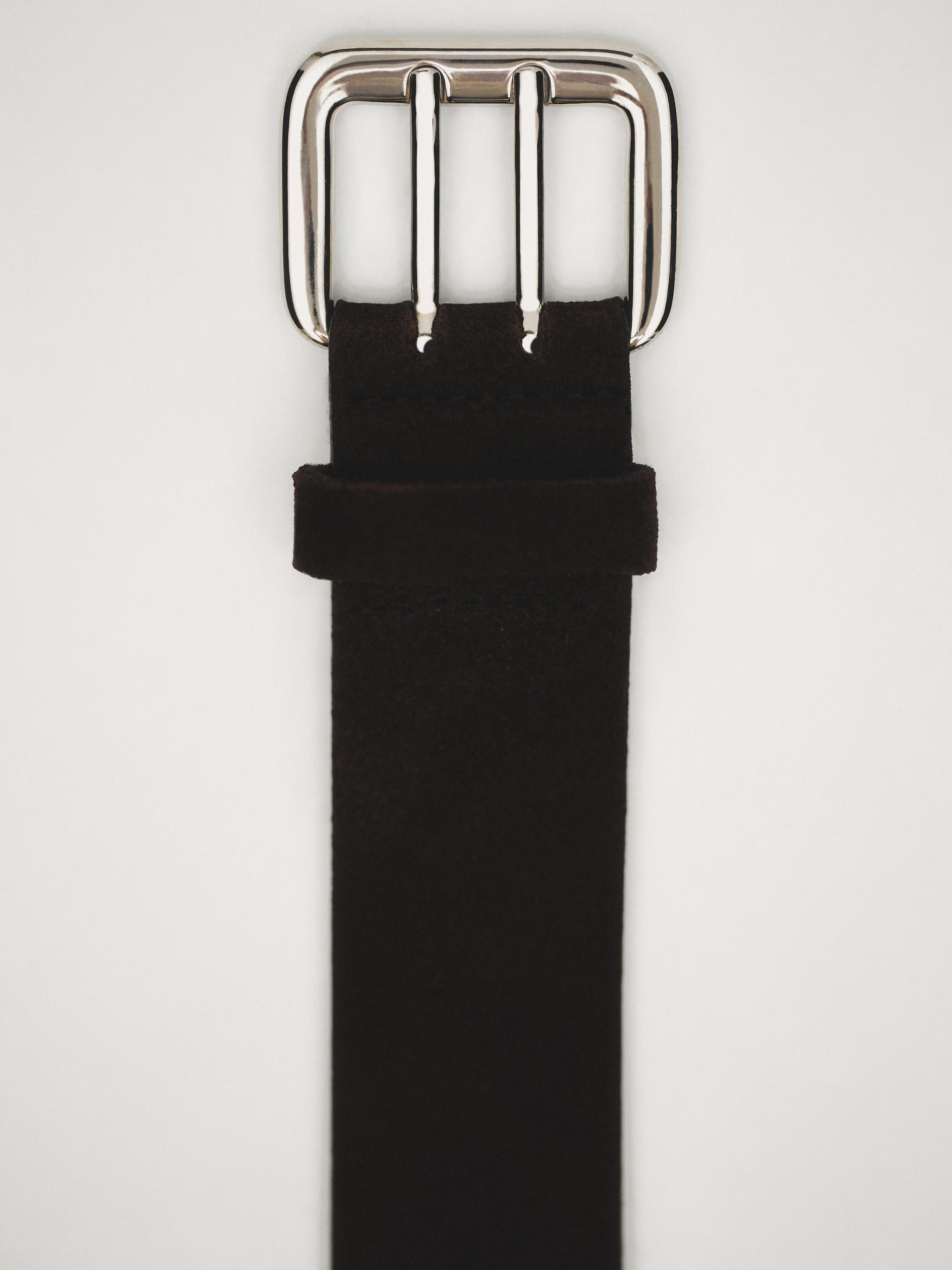 Nubuck leather belt with double buckle