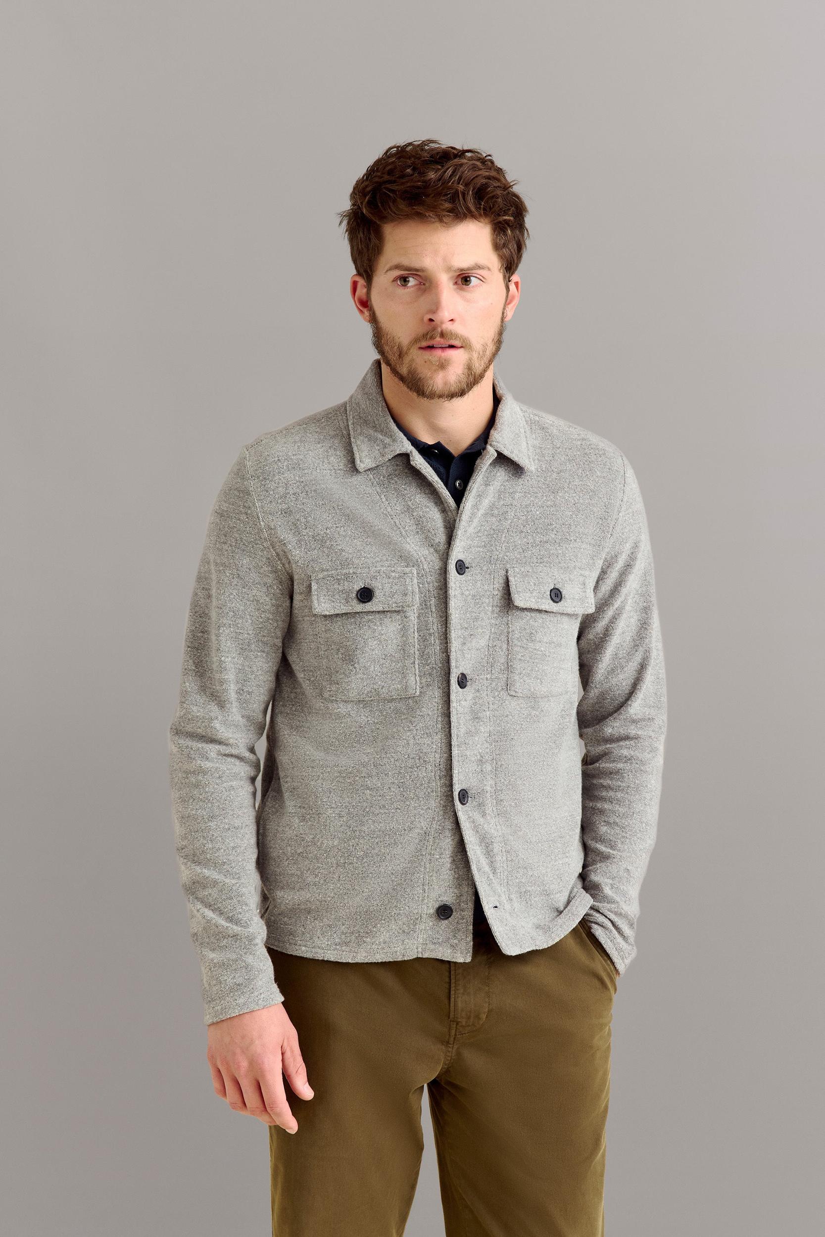 This grey jacket is knit with luxe fabric and crafted in Japan. It features a plush melange cotton terry knit composition that feels extra soft against the skin while keeping its structure to wear over a button-down or t-shirt. The jacket has plenty of extra storage too with two chest pockets and waist pockets with sid