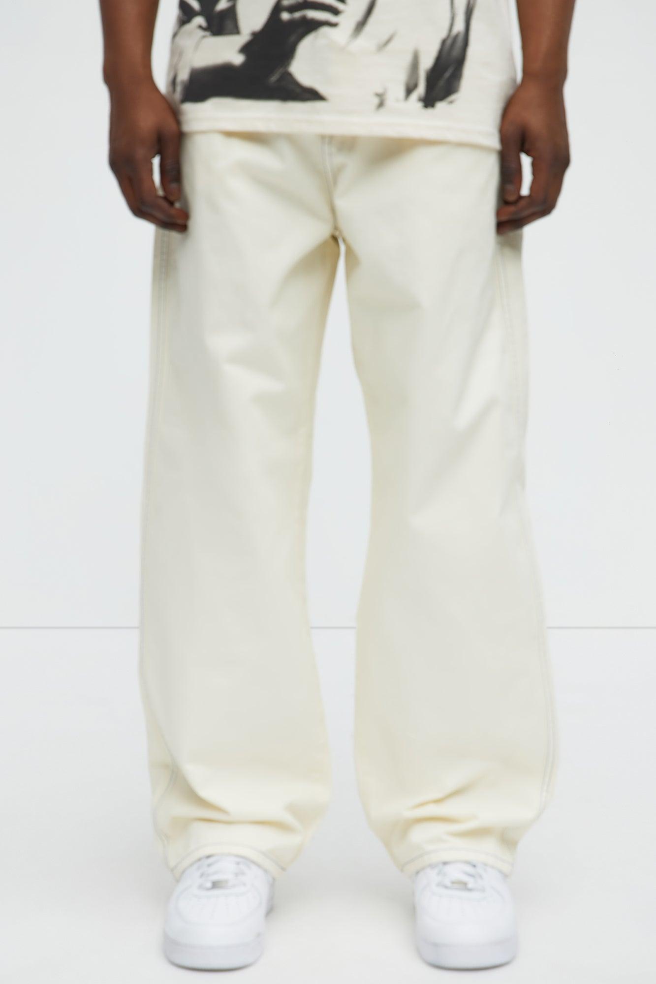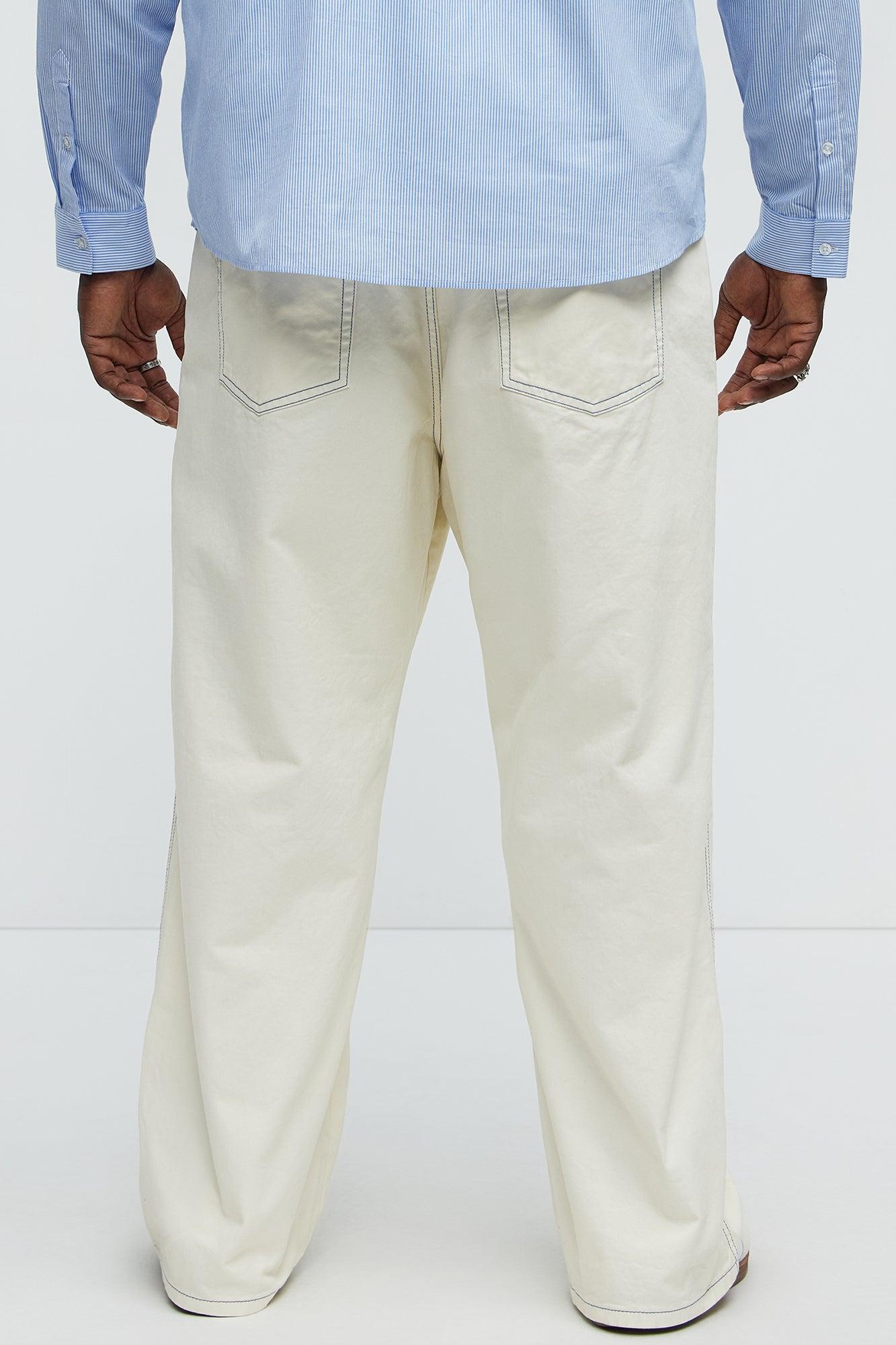 Number One Contrast Stitching Baggy Pant - Off White