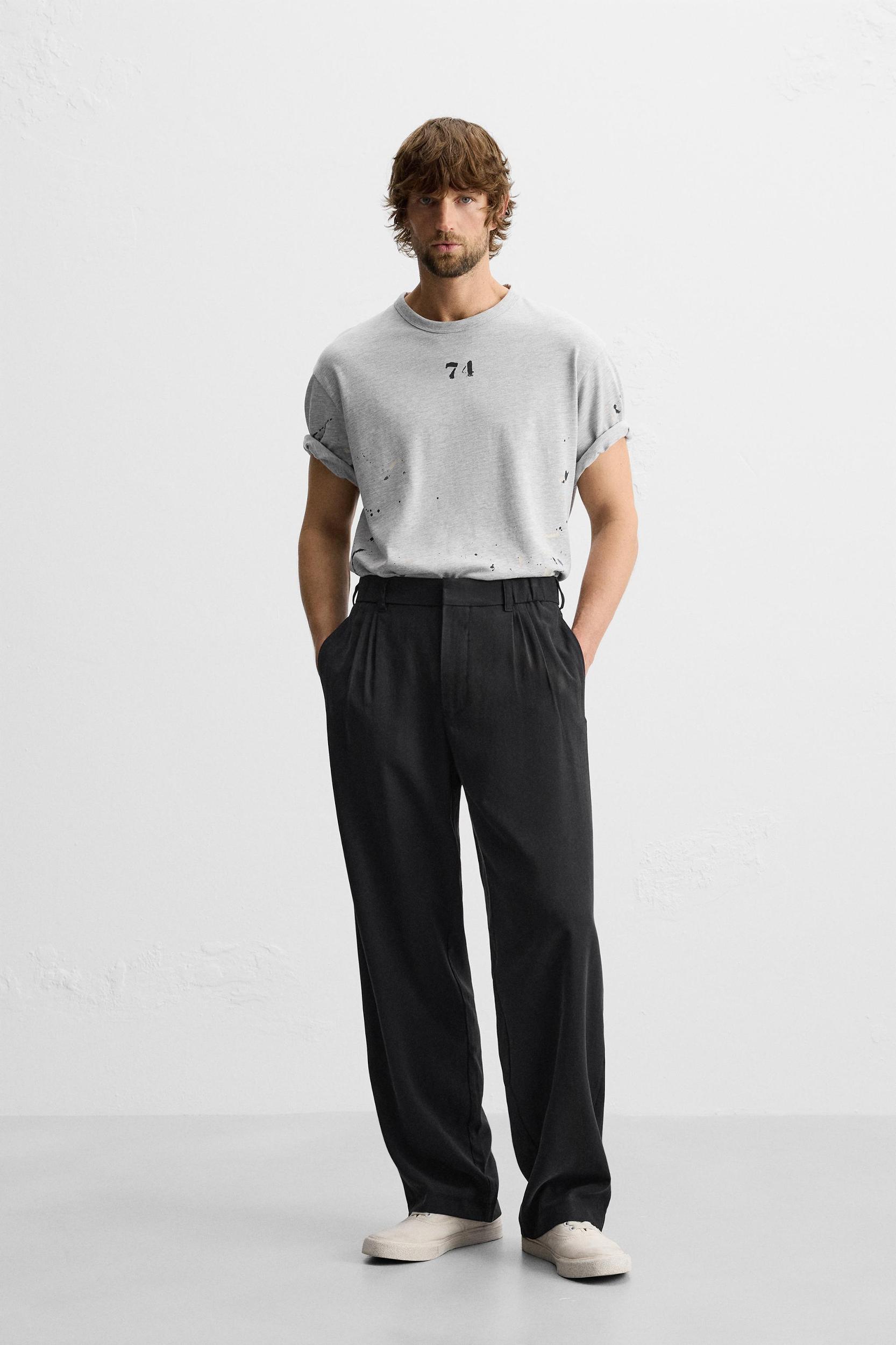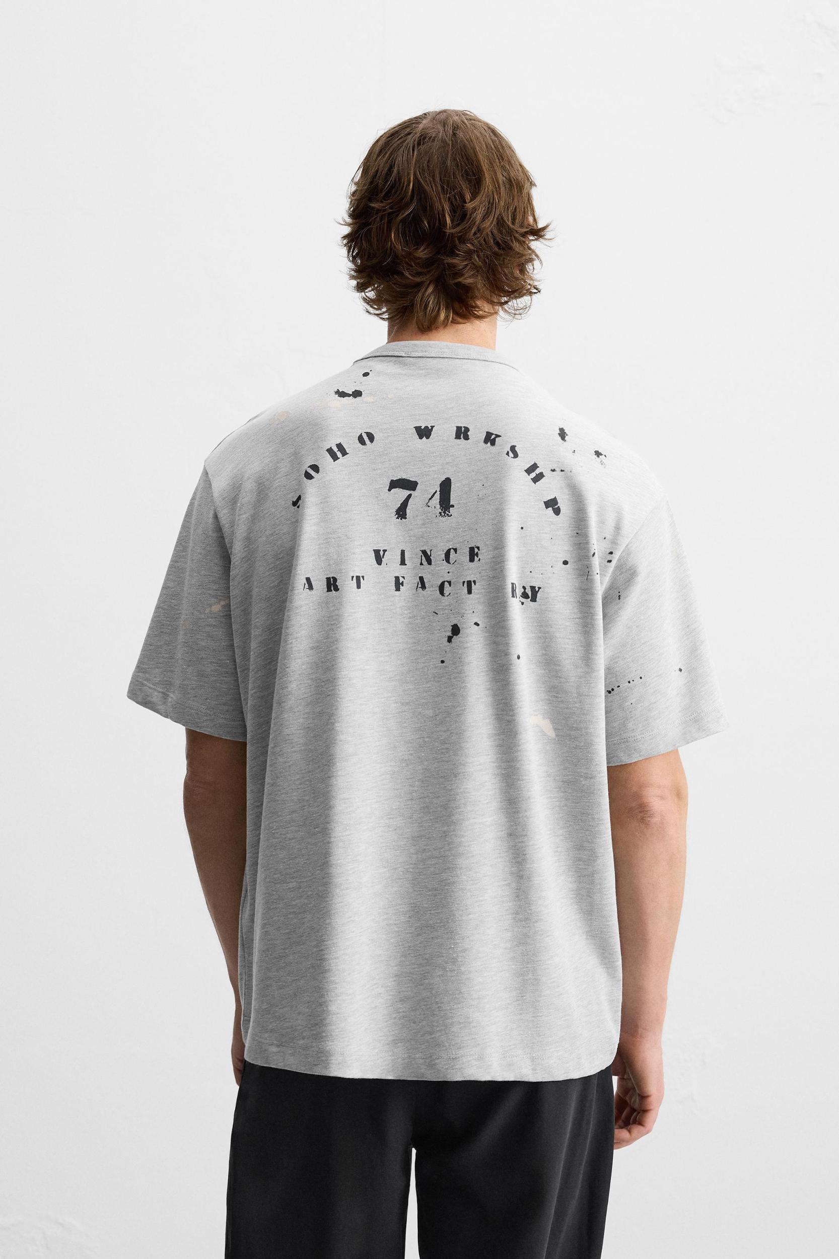 Relaxed fit T-shirt. Round neck and short sleeves. All-over contrasting text and splatter print.