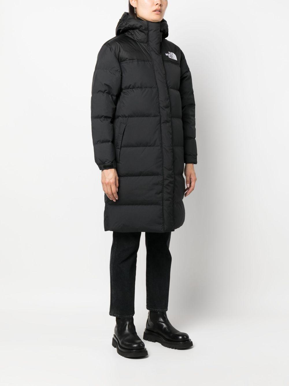The North Face Nuptse hooded puffer coat | Black | black | recycled down | padded design | quilted | embroidered logo at the chest | classic hood | high neck | long sleeves | two side inset pockets | thigh-length | straight hem | Nylon/Polyester/Polyester/Recycled Feather Down | Parkas | Coats | Clothing | Women