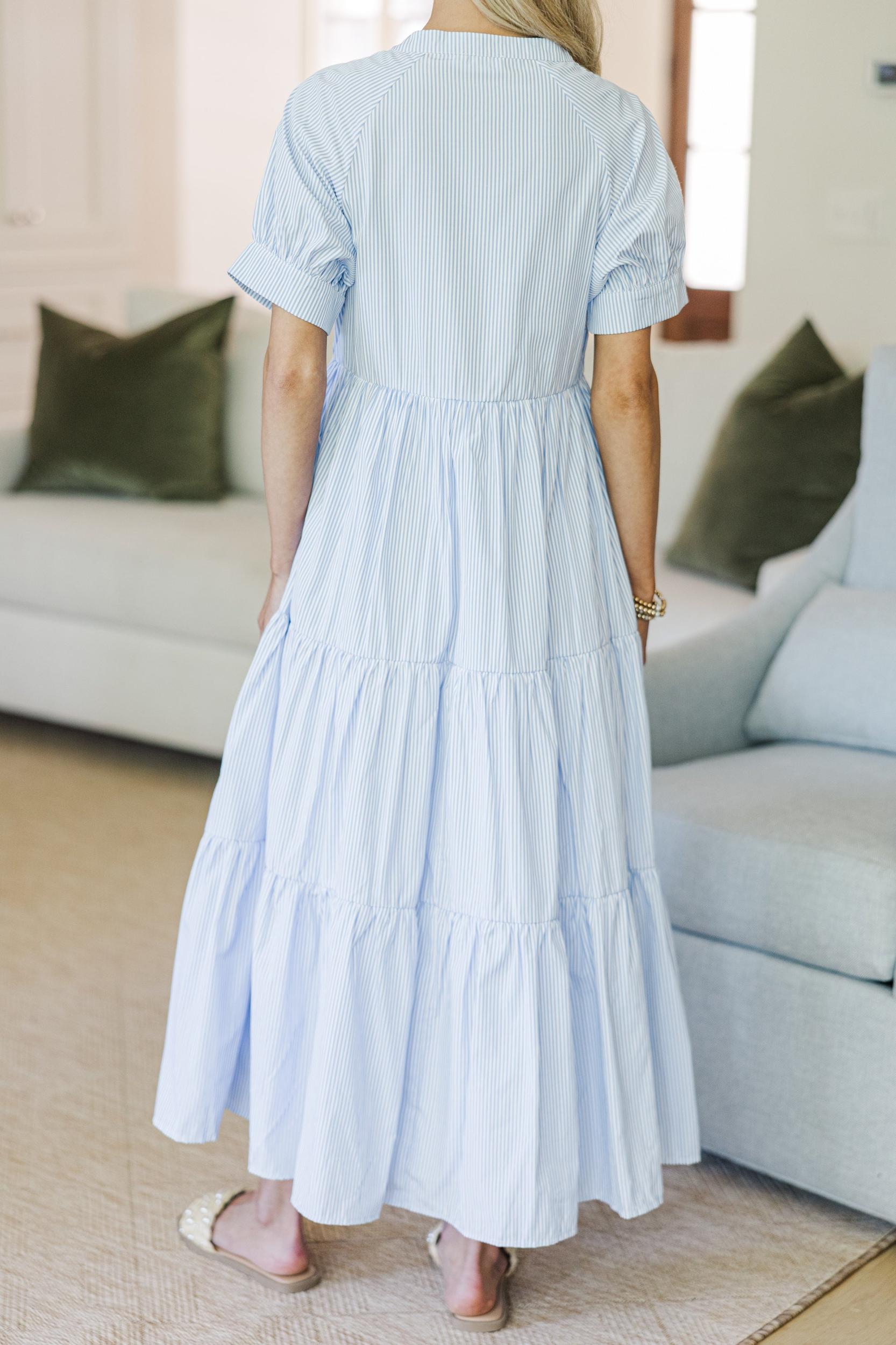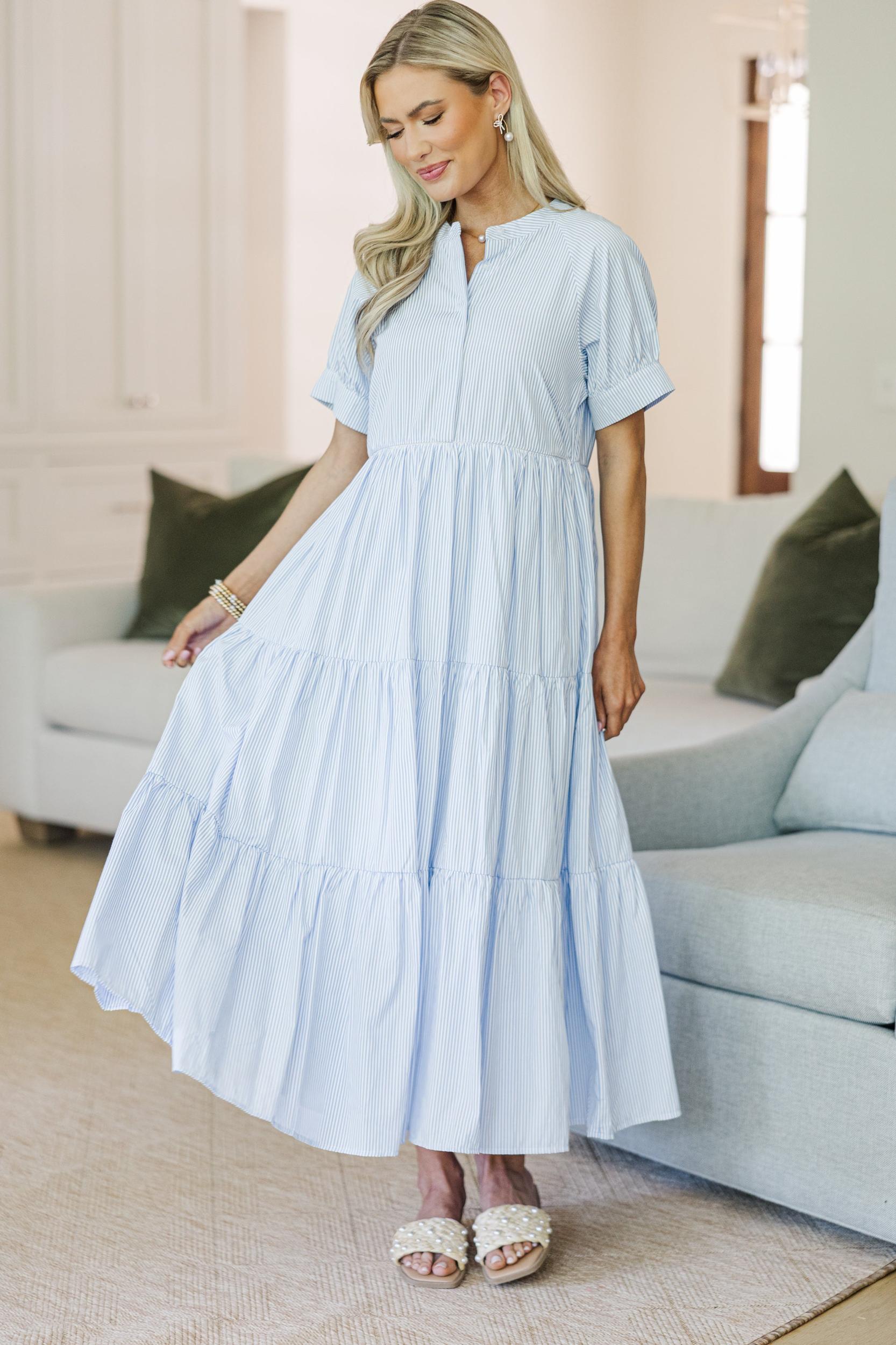 You're going to live in this dreamy tiered midi dress! It’s flowy, flattering, and thoughtfully designed with hidden zippers under the bust for easy nursing access—because you deserve style and convenience. The soft, lightweight fabric and slightly puffed sleeves make it a breezy favorite for postpartum days (and beyond!). Partial button down round neckline Short sleeves Hidden zipper under the bust that can unzip all the way across from either side Striped print Material has no amount of stretch Baileigh is wearing the small.