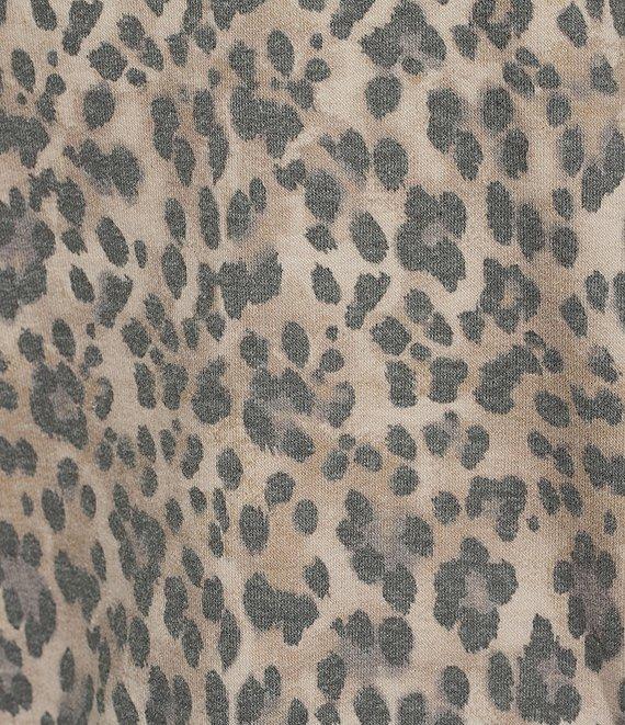 Nurture Animal Print Raw Edge Relaxed Long Sleeve Crew Neck Knit Top
