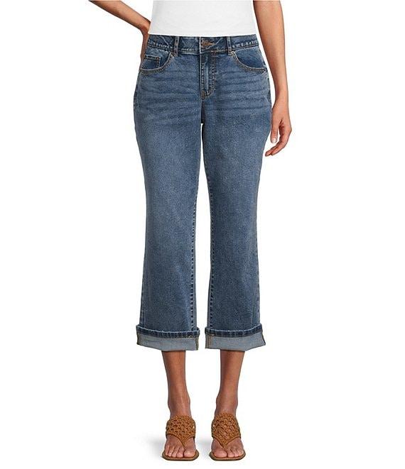 From Nurture by Westbound, these jeans feature: Denim fabrication 5 functional pockets High-rise Rolled cuff Boyfriend silhouette Cropped length Slim fit Wash before wearing Approx. 24" inseam with cuff folded Cotton/polyester/spandex Machine wash/tumble dry Imported.