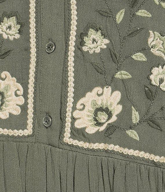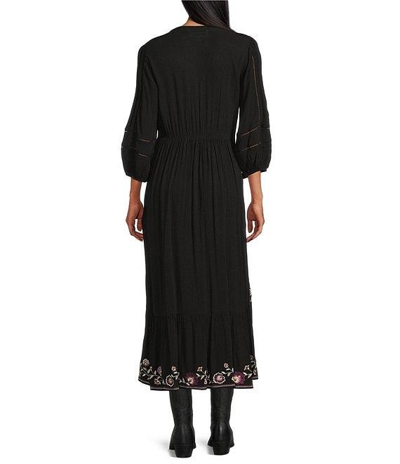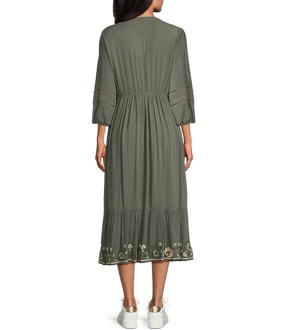 Nurture Embroidered 3/4 Sleeve V-Neck Midi Dress