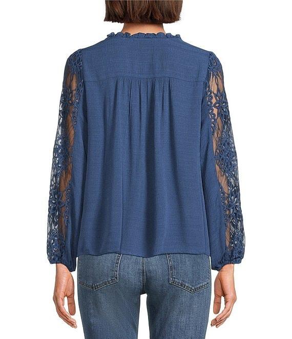Nurture Mixed Media Lace Y-Neck Long Sleeve Top