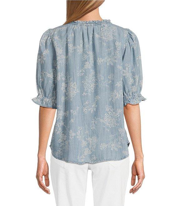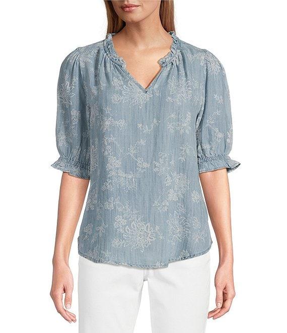 From Nurture, this top features: Short sleeves V-neckline Pullover construction Distressed Lyocell/tencel Machine wash/tumble dry Imported.