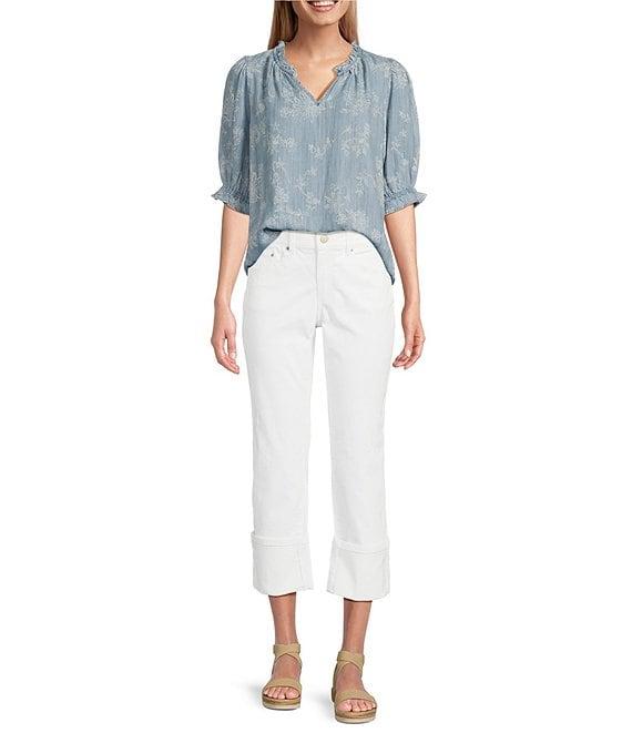 Nurture Notch Neck Short Sleeve Ruffled Top
