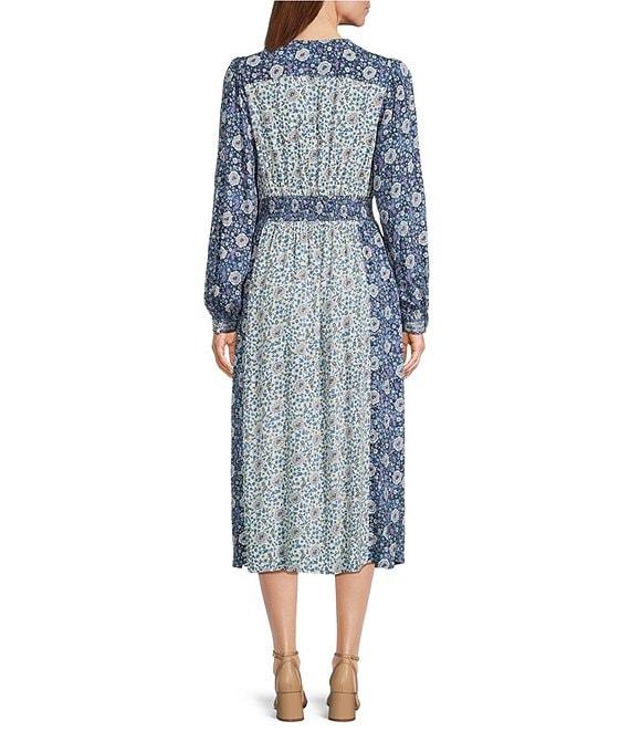 Nurture Petite Size Floral Long Sleeve V Neck Crinkle Woven Midi Dress