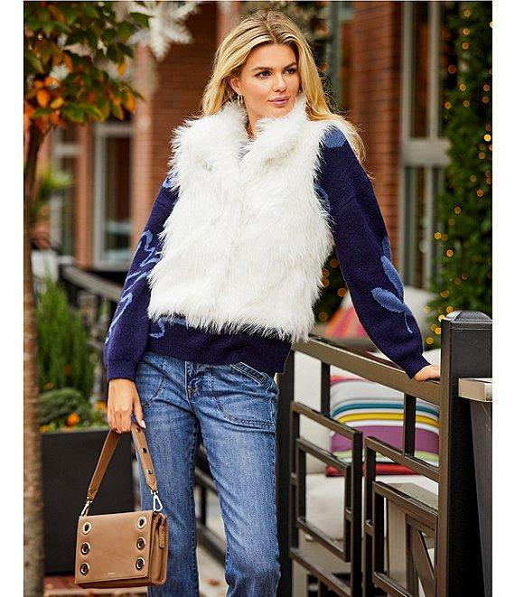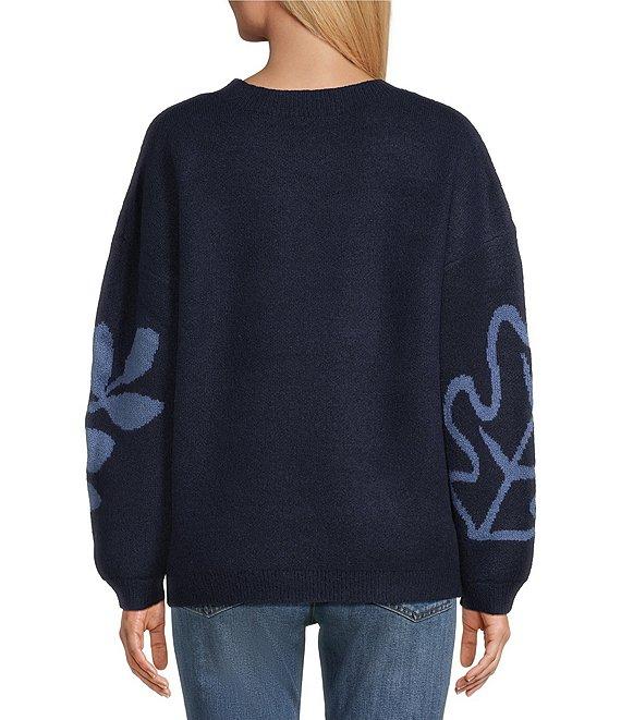 Nurture Petite Size Leaf Pattern Long Sleeve Crew Neck Sweater