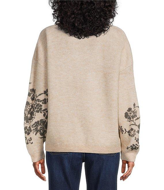 Nurture Petite Size Long Sleeve Floral Patterned Crew Neck Sweater