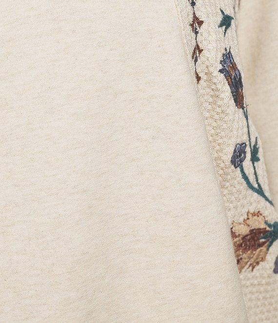 From Nurture Plus, this top features: Embroidered and trim details Crew neckline Dolman sleeves Long sleeves Mixed media Cotton/polyester/spandex Machine wash/tumble dry Imported.