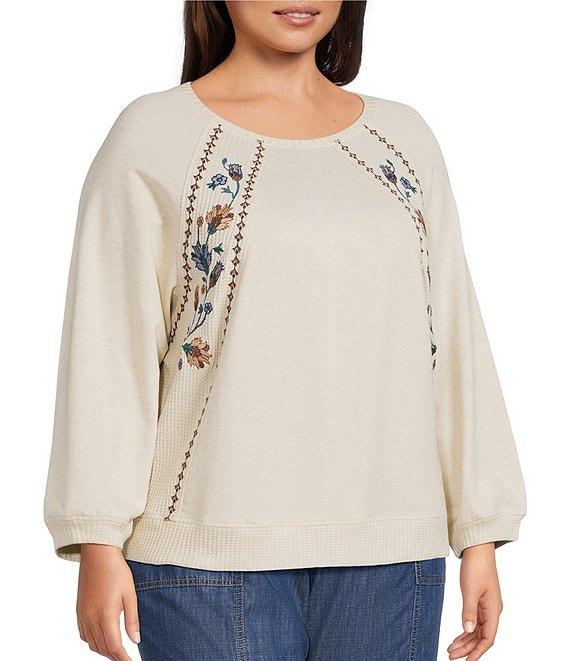 Nurture Plus Knit Crew Neck Long Sleeve Embroidered Top