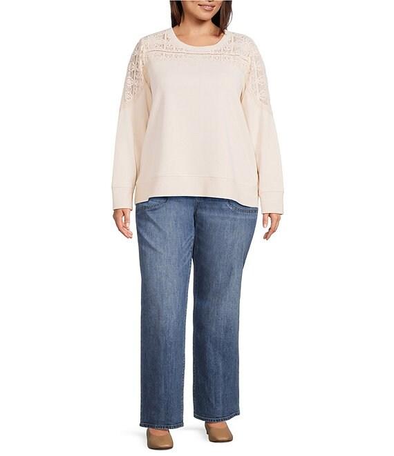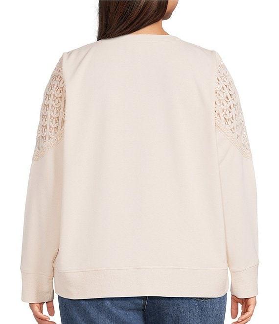 Nurture Plus Mixed Media Lace Crew Neck Long Sleeve Top