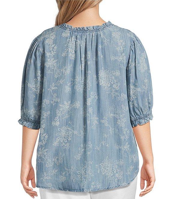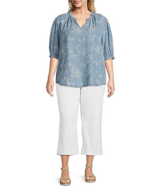 Nurture Plus Size Notch Neck Elbow Sleeve Ruffled Top
