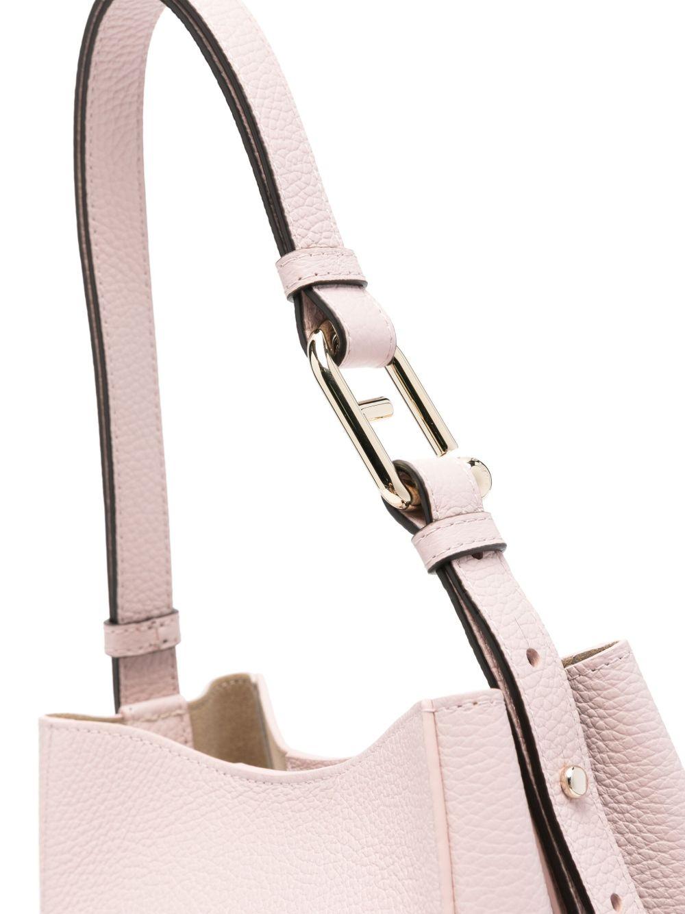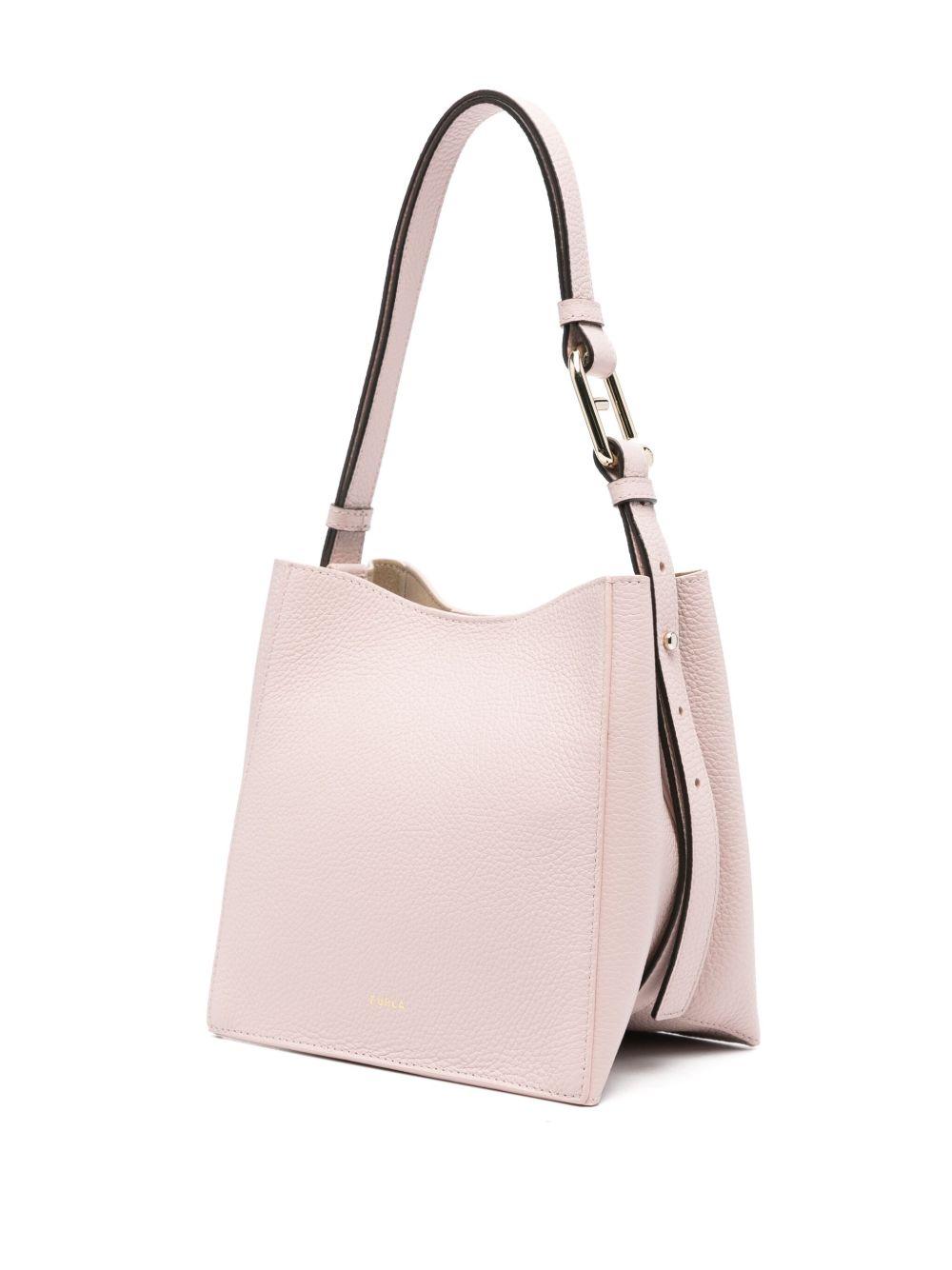 Furla Nuvola leather shoulder bag | Pink | light pink | leather | pebbled texture | logo stamp to the rear | adjustable detachable shoulder strap | main compartment | multiple internal slip pockets | internal zip-fastening pocket | internal logo patch | gold-tone hardware | magnetic fastening | This piece comes complete with a protective dust bag. | Leather/Polyamide/Polyurethane | Shoulder Bags | Bags | Women