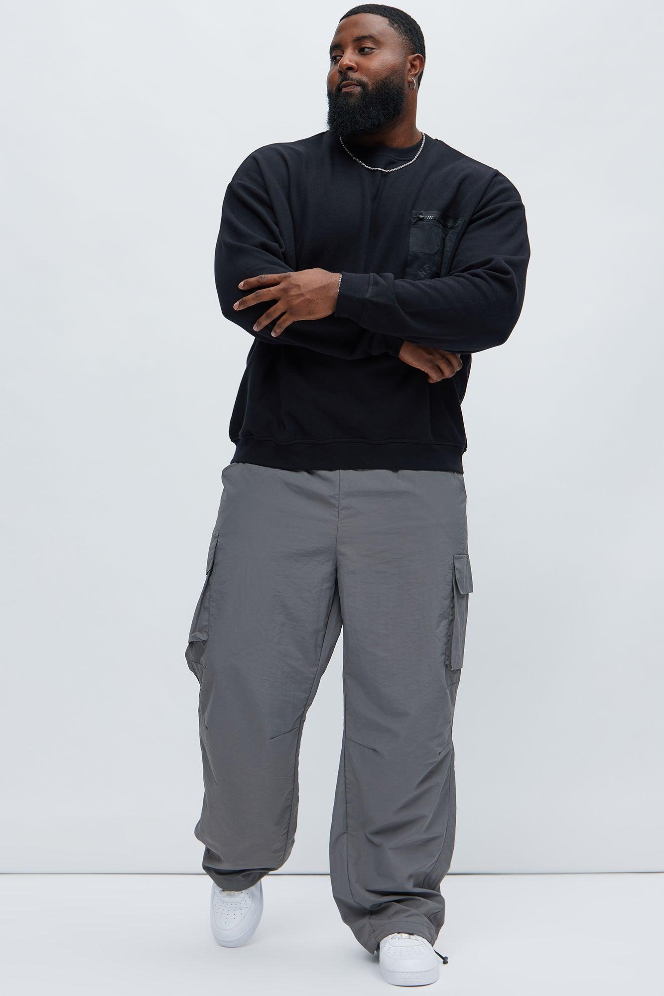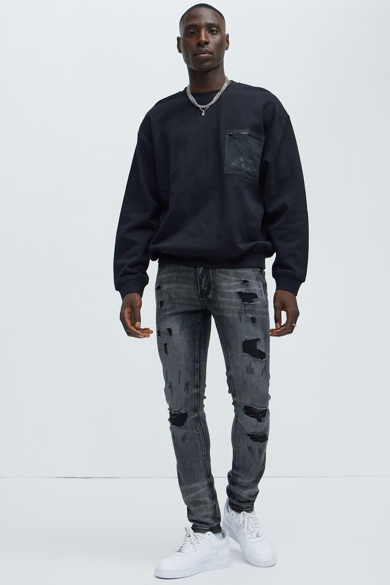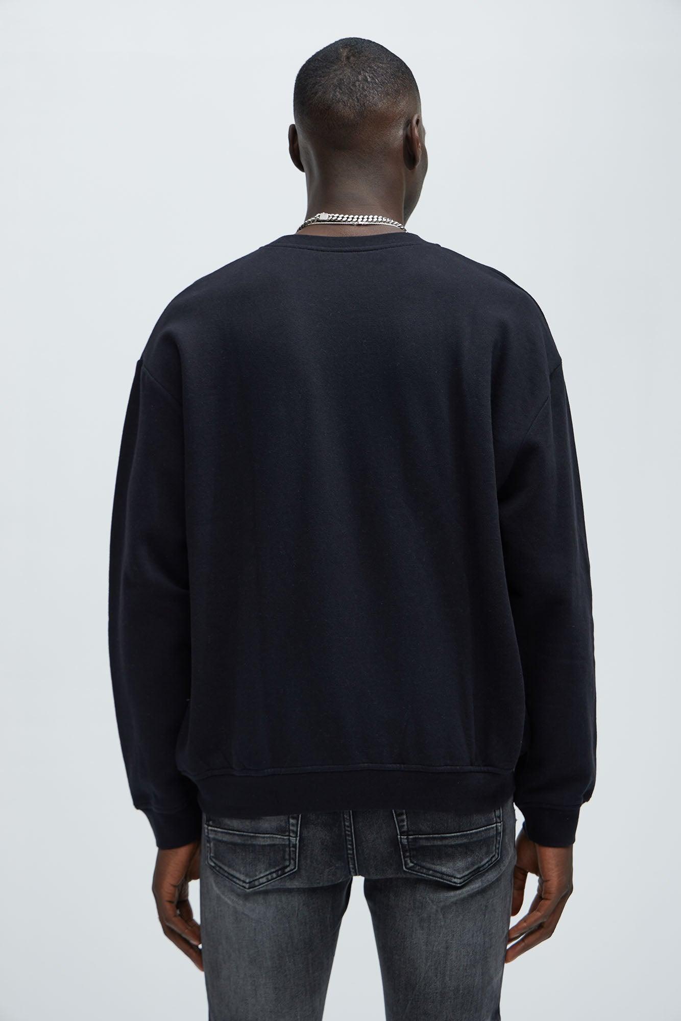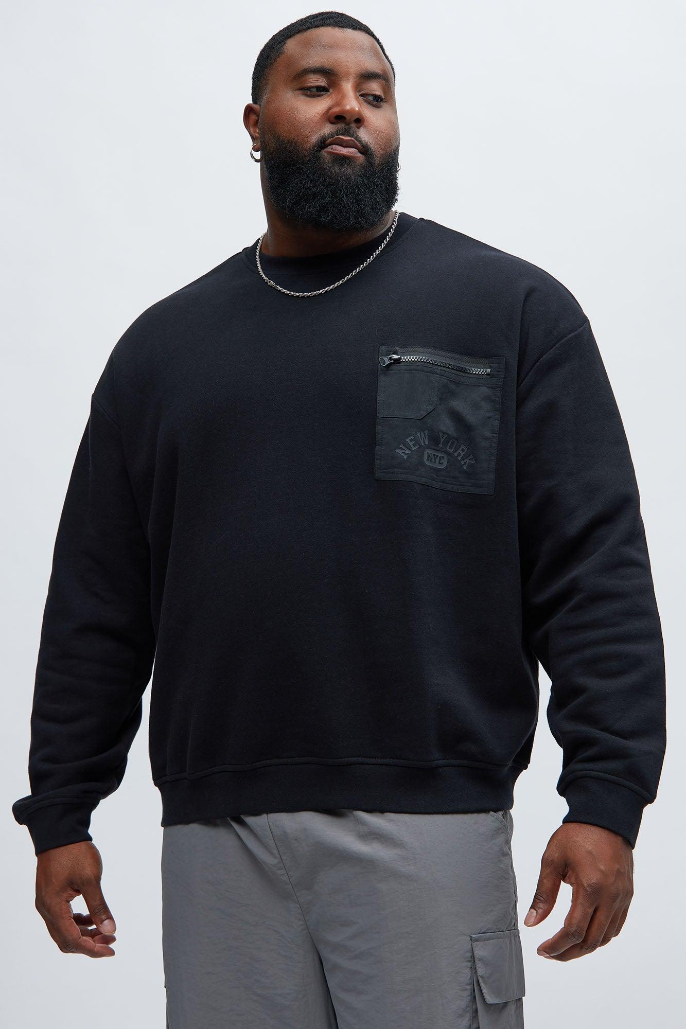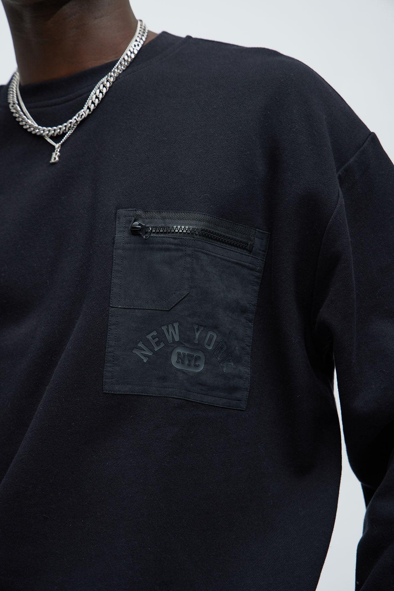 Available In Black. Crew Neck Long Sleeve Pocket Detail 100% Cotton Imported