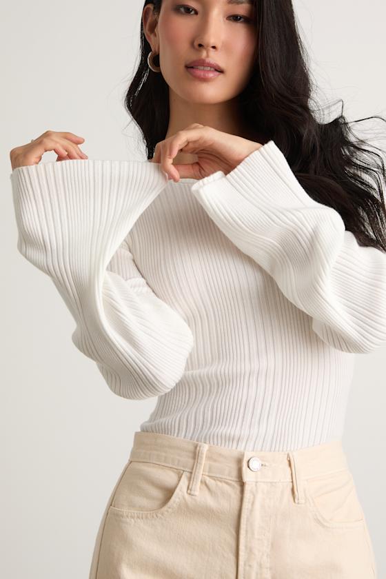 Running late? Slip on this too-cute sweater top for an instantly put-together look everyone adores. Comfy, lightweight ribbed sweater knit shapes a classic crew neckline and a figure-skimming bodice that tucks into your favorite denim perfectly, all framed by long sleeves with chic flaring cuffs.