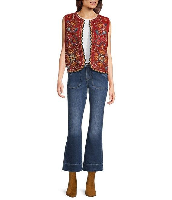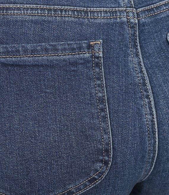 From NDJ, these jeans feature: Stretch denim fabrication Mid rise Belt loops Front & back patch pockets Bootcut leg Straight hemline Front button and zipper closure Approx. 32" inseam, 17.5" le opening, 9.5" rise Cotton/polyester/lyocell/elastane Machine wash Imported.