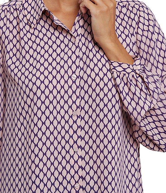 NYDJ Emily Pierre Woven Printed Point Collar Long Sleeve Blouse
