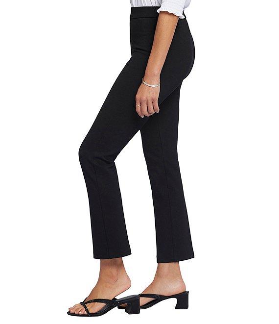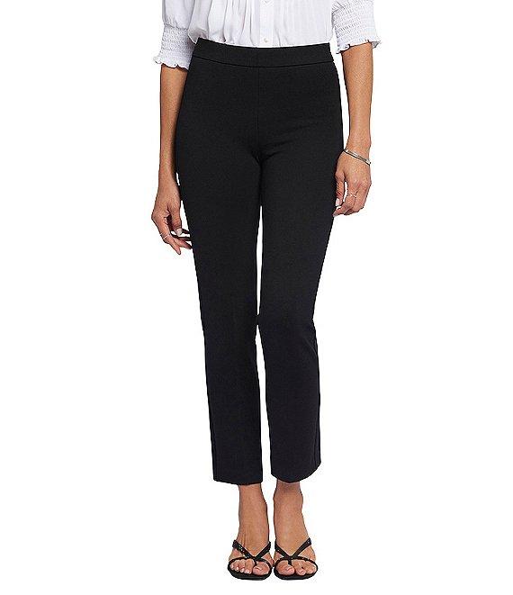 From NYDJ, these pants feature: Straight leg silhouette NYDJ Lift Tuck® Technology uses a patented crisscross panel to flatten in the front, white curve-contouring construction flatters your backside Slim fit Ankle length Pull on construction Approx. 27" inseam, 15" leg opening, 10.5" front rise, 14" back rise Viscose/nylon/elastane Machine wash cold/line dry Imported.