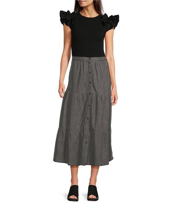 NYDJ Lightweight Denim Tiered Maxi Skirt