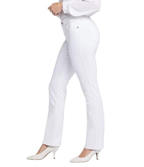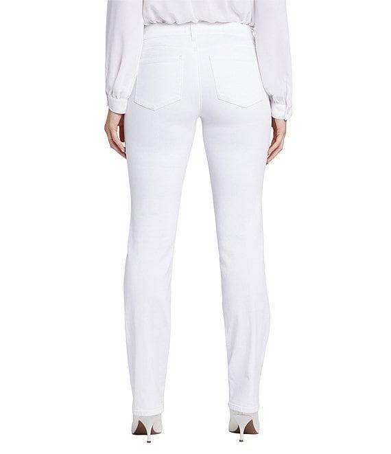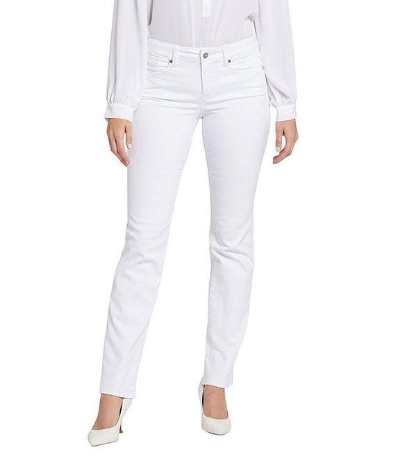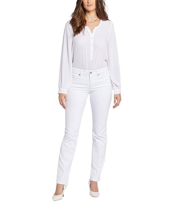 From NYDJ, these jeans feature: Stretch denim fabrication Straight leg silhouette 5 pocket styling Belt loops Ankle length Lift Tuck® technology Front button and zipper closure Approx. 32" inseam, 16" leg opening, 9.75" rise Cotton/elastane Machine wash cold/line dry Imported.