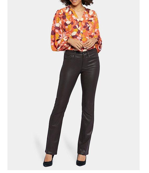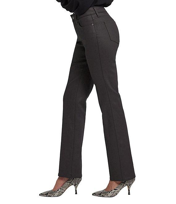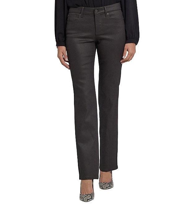 From NYDJ, these jeans feature: Stretch-coated denim fabrication Belt loops 5-pocket style Straight leg silhouette Lift Tuck® Technology uses a proprietary slimming panel with a patented criss-cross design to shape and support your curves Full length Front button and zipper closure Approx. 32" inseam; 16" leg opening; front rise 9.75"; 15.25" back rise Modal/polyester/lycra elastane Machine wash cold/line dry Imported. The easy, figure-elongating construction of NYDJ's Coated Marilyn Straight Jeans pairs well with everything, thanks to a flattering waist and a versatile straight-leg fit. A coated finish gives this Marilyn Straight style a sleek, sophisticated appearance that's fabulous for every day and special occasions. Our Lift Tuck Technology uses a proprietary slimming panel with a patented criss-cross design to shape and support your curves. Features classic five-pocket styling and a zip fly with button closure.